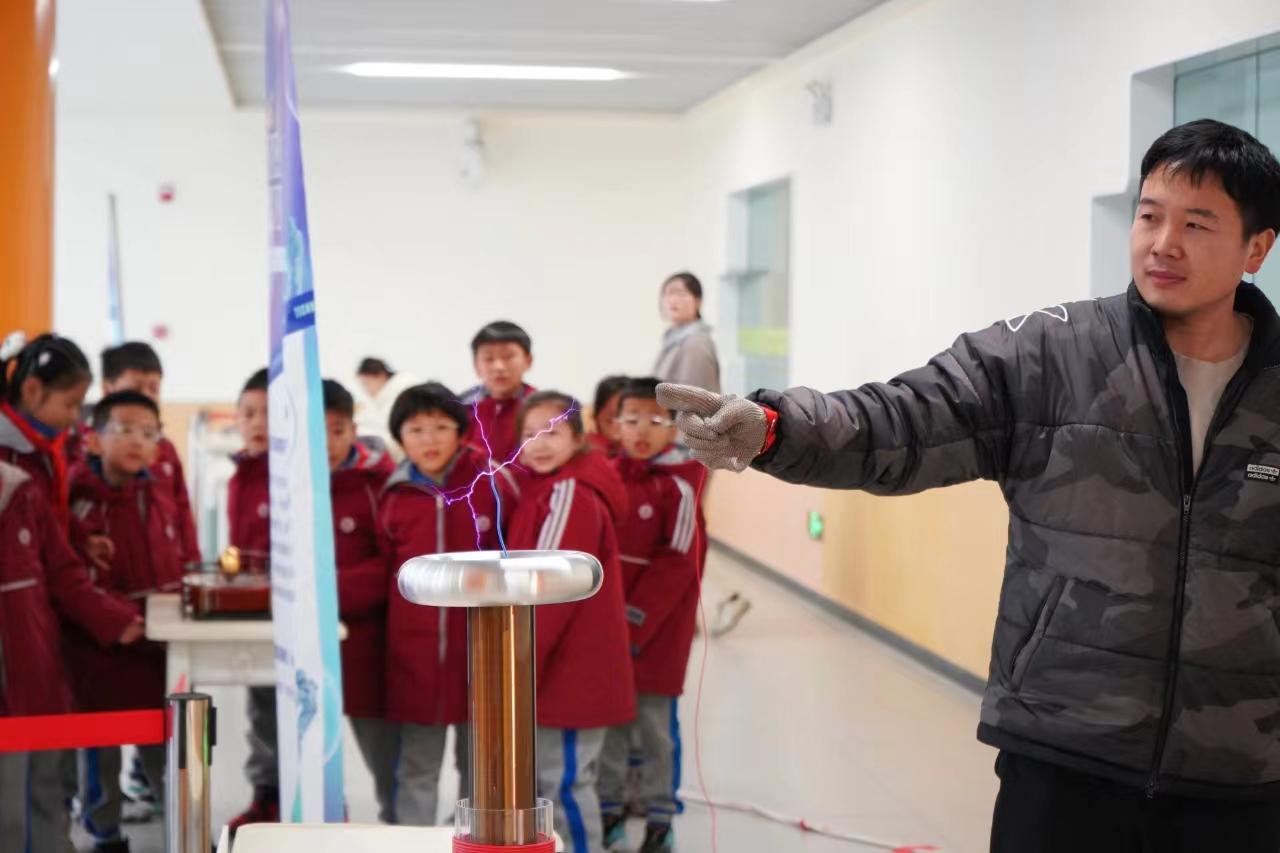 记者在活动现场看到,液态铁匠铺环节,包含如同科幻电影中流淌的金属神秘物质,同学们可以见证物质的奇妙可塑性;水果音乐厅环节,轻触充当“琴键”的水果,奏响美妙的旋律;在五彩印象部,领略光的魔法;而转子发明室,则展示了电磁加速的强大力量。