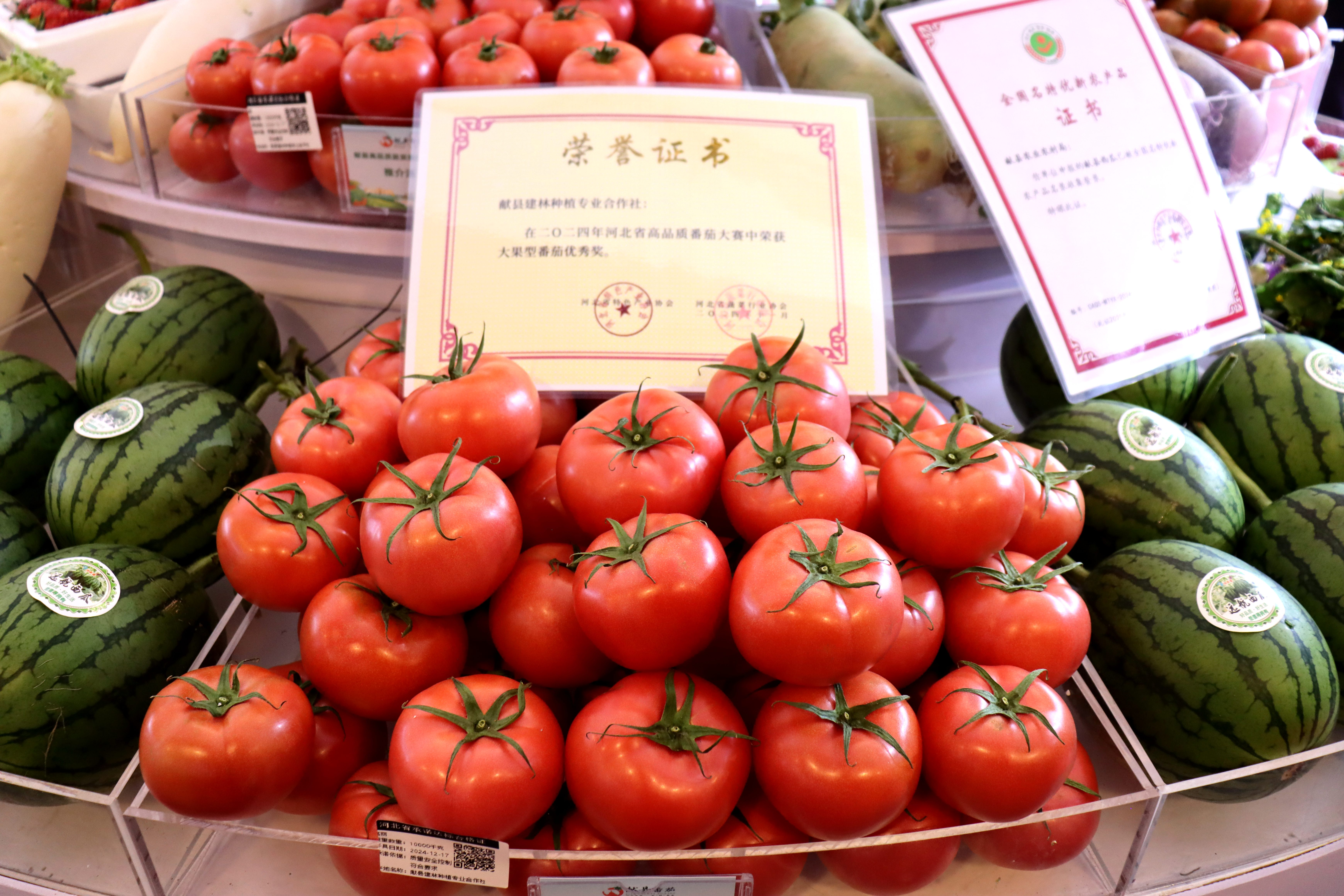 据介绍,献县是河北省高品质蔬菜产业示范区,瓜菜种植面积达15.3万亩,年产62万吨,其中设施瓜菜种植面积5万亩,主要品类有番茄、甜瓜、西瓜、西兰花等20余种,注册商标有“誉彤”“王新”“e族青花帮”等30余个,初步形成了从种植、储藏、保鲜、初加工到冷链运输、电子商务销售等为一体的全链条产业集群。献县番茄、献县甜瓜、献县西瓜、献县西兰花、献县桑葚等农产品荣获全国名特优新农产品认证,益民合作社、亚兴家庭农场、翔瑞生态农业、清新食用菌荣获环京周边蔬菜基地认定,献县蔬菜产品在第六届京津冀蔬菜产业发展大会获得蔬菜精品荣誉称号。