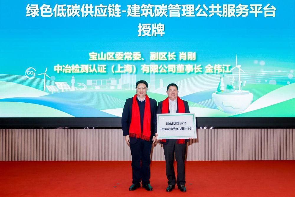 仪式现场,绿色低碳供应链—建筑碳管理公共服务平台、碳信用公共服务平台、宝山区绿色低碳发展联盟理事长单位正式授牌,作为国内建筑检测行业的龙头企业,中冶检测承担“宝山区绿色低碳发展联盟理事长”相关工作,为宝山区绿色低碳转型样板区建设贡献央企力量。