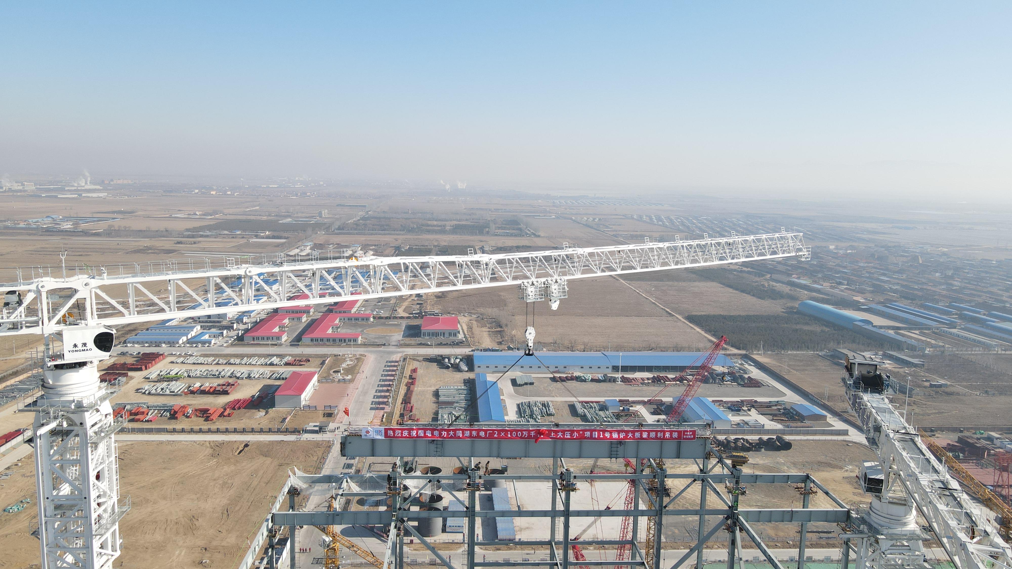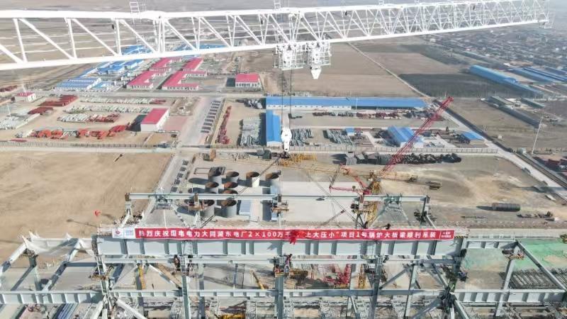 记者了解到,该项目位于山西省大同市,是山西省打造12个千万千瓦级能源基地的重要调峰电源之一,也是国家能源集团与山西省人民政府重要战略合作项目。项目通过建设2台装机容量100万千瓦超超临界一次再热、间接空冷燃煤机组,替代大同第二发电厂一期6台200兆瓦机组,同步安装建设烟气脱硫、脱硝装置,利用“三塔合一”布置方式,极大提高能源利用效率。大板梁的顺利开吊,标志着1号锅炉主体框架基本完成,为锅炉受热面安装奠定了基础。