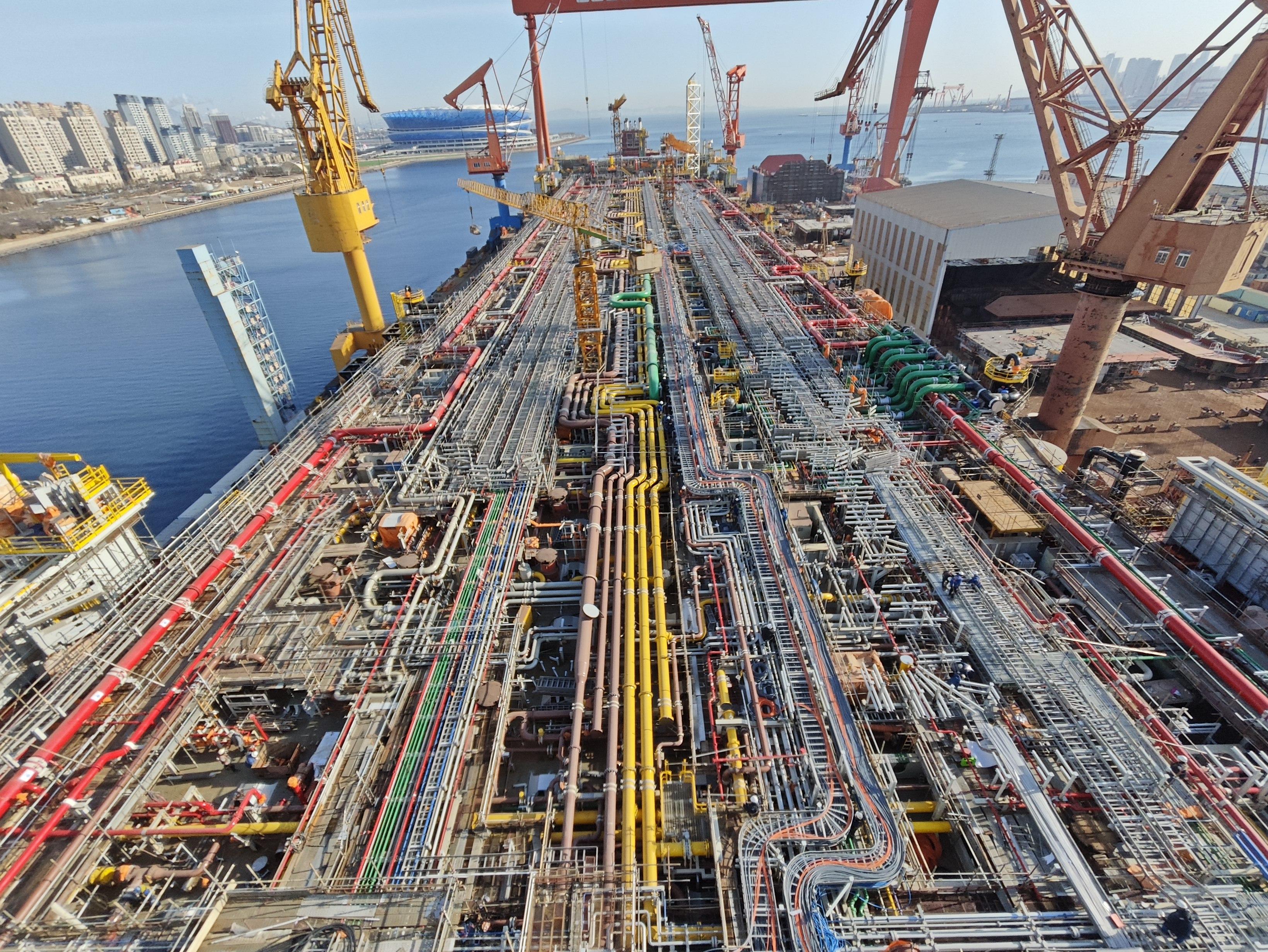 在该项目中,大连造船负责FPSO浮体部分、生活区、模块支墩的设计建造及部分上部模块的建造、安装和集成。