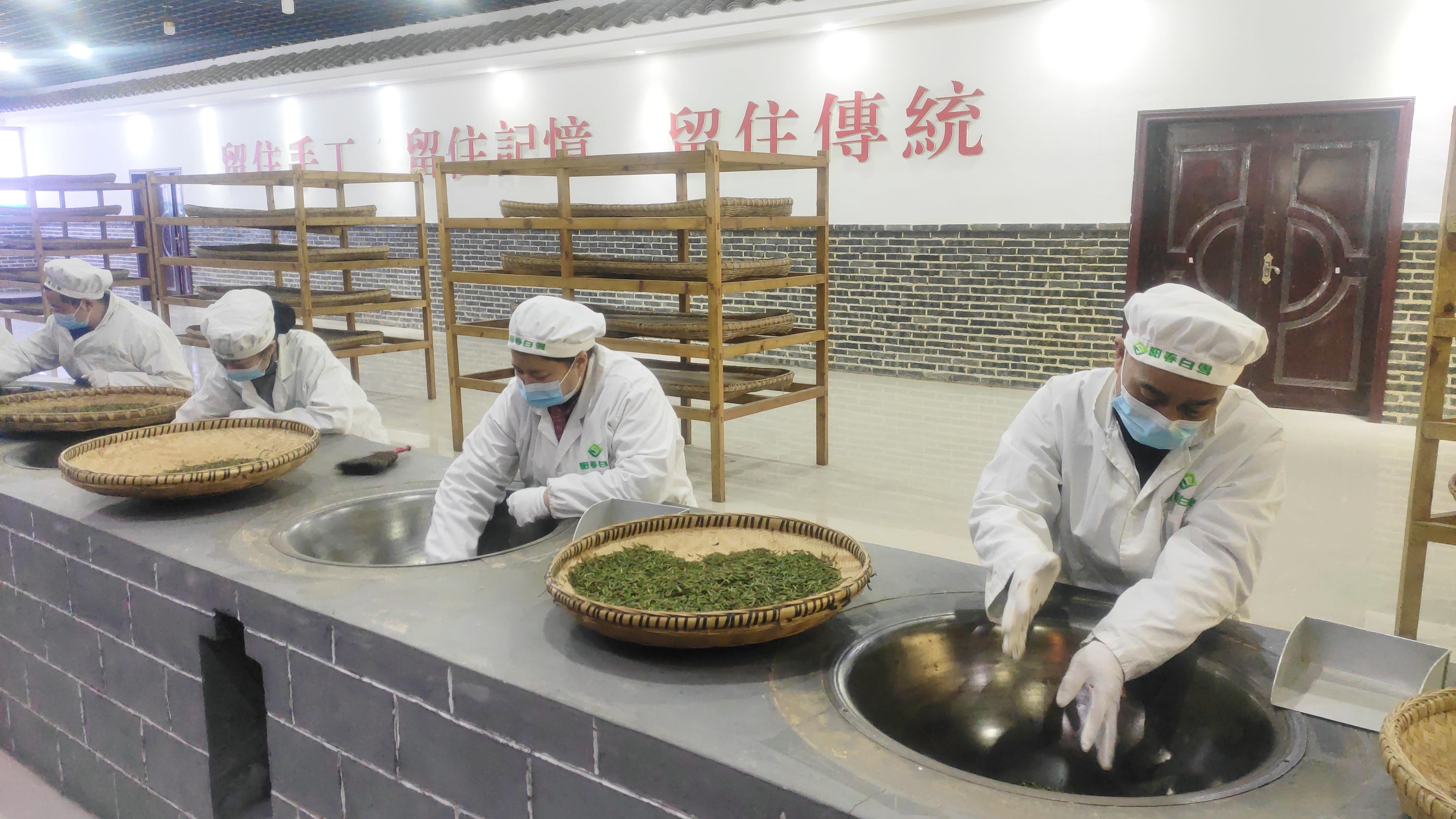 12月24日下午,在“新时代新征程央地媒体遵义行”主题采访中,记者来到贵州阳春白雪茶业有限公司,该公司技术总监、湄潭翠芽手工制作技艺第十代传承人唐诗江,正在现场展示传统手工制茶技艺。