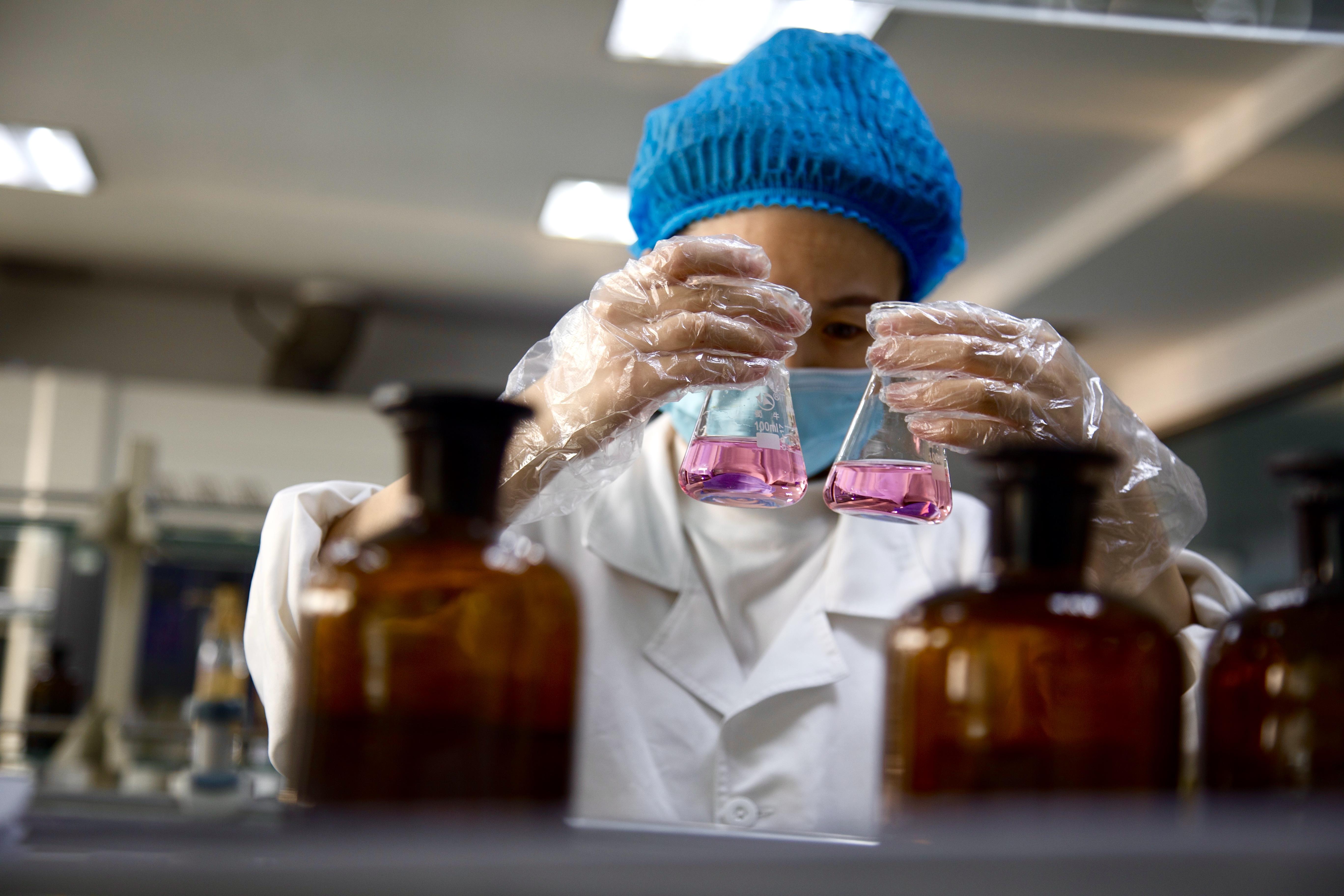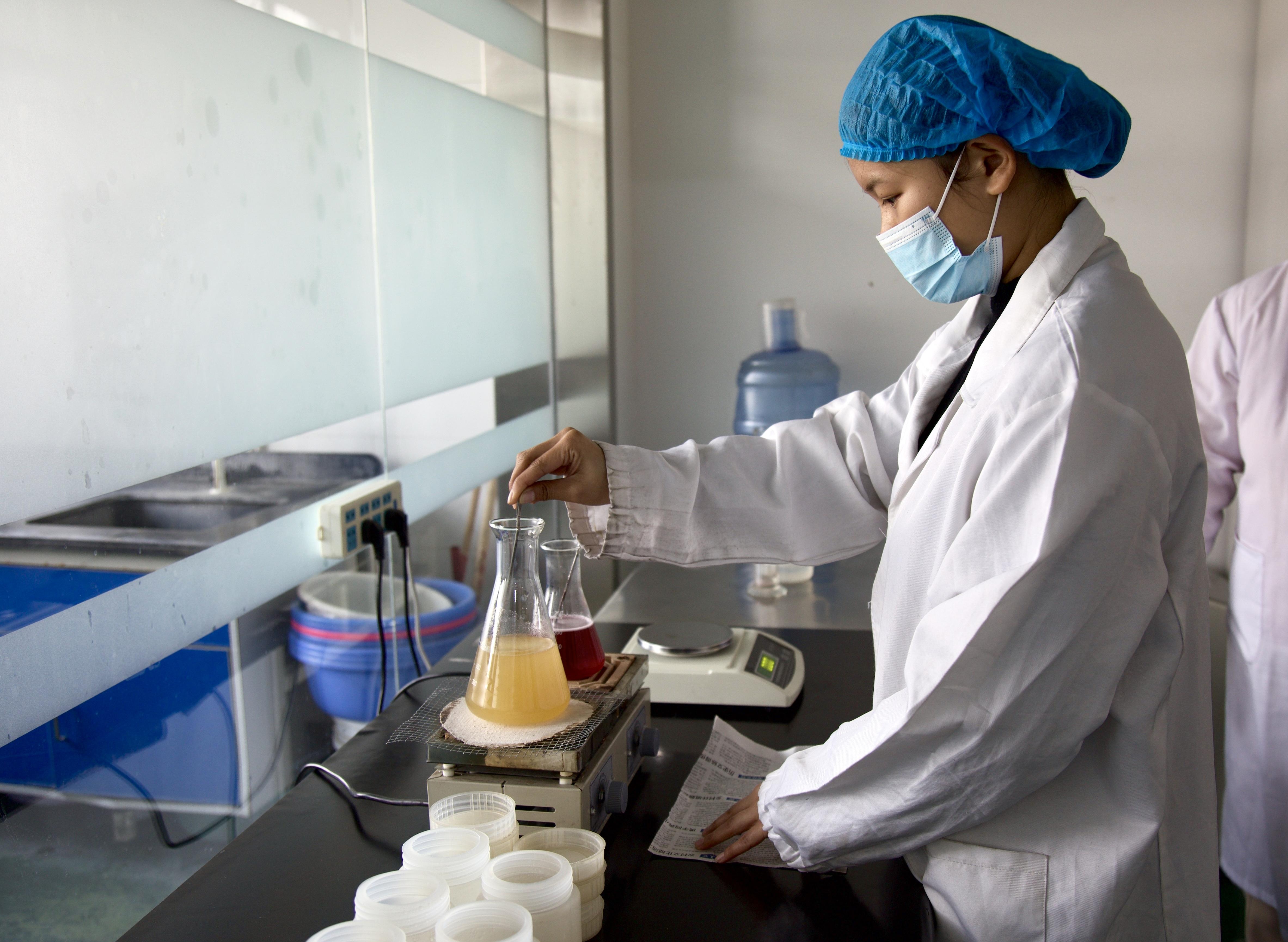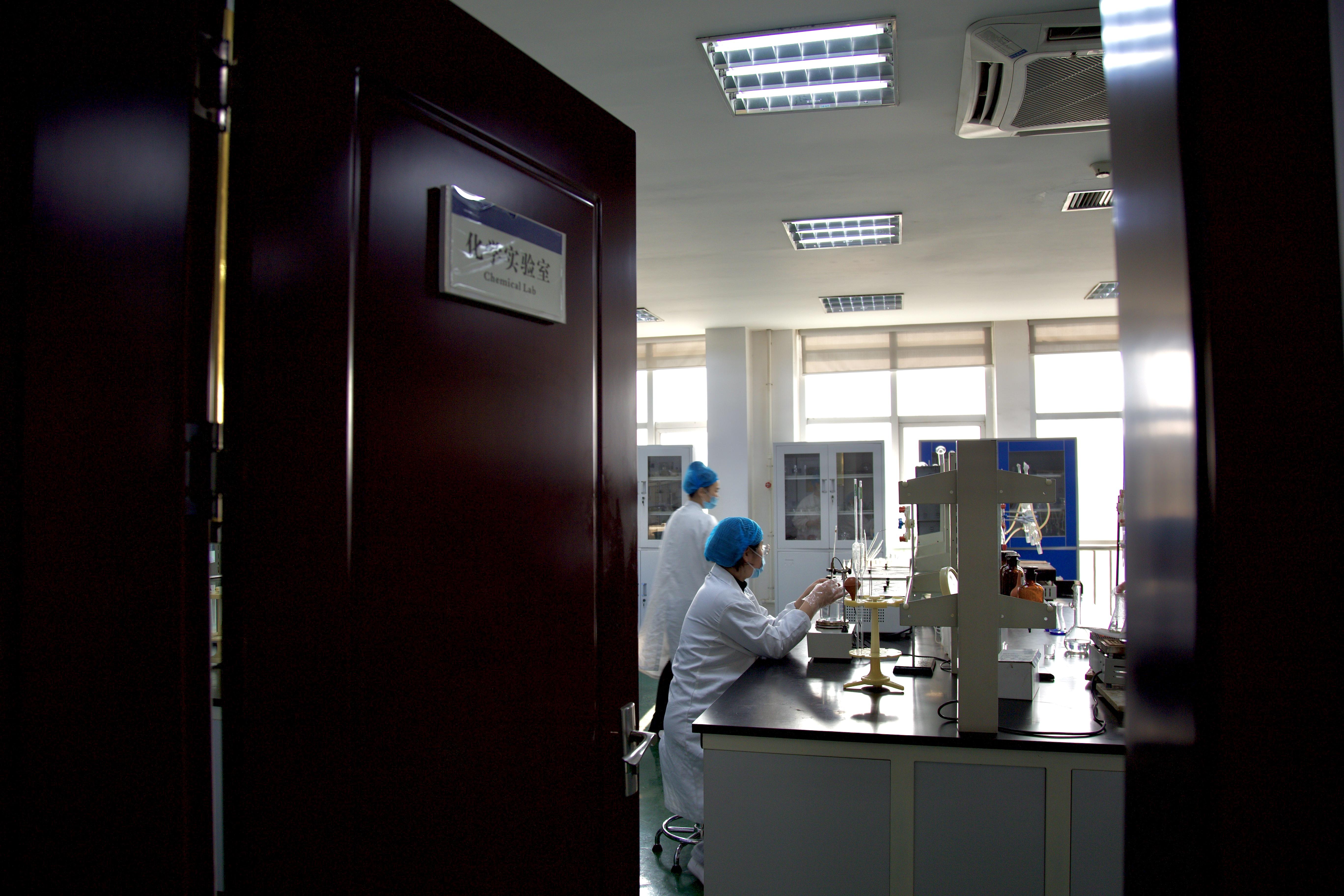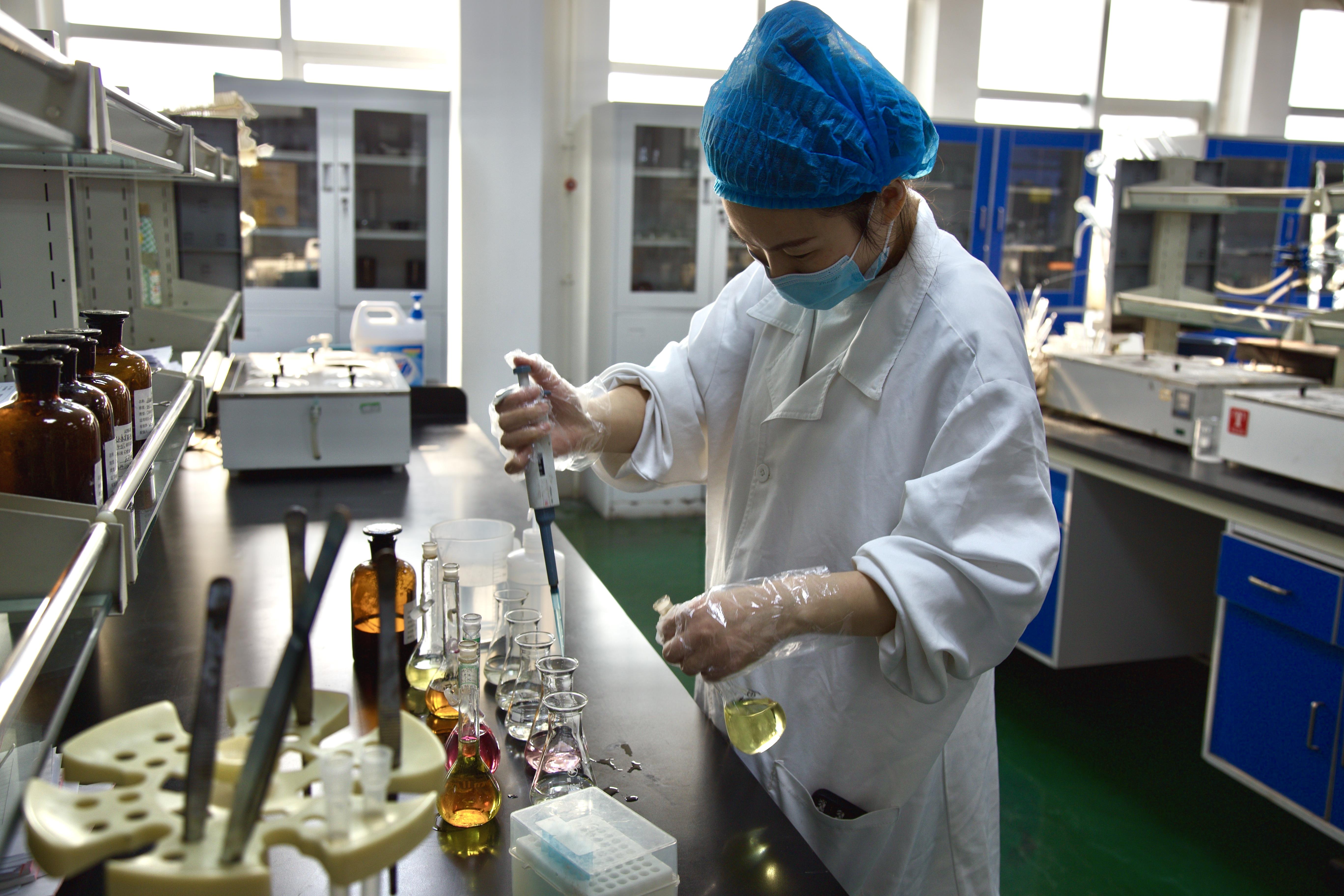 据介绍,“魔法小屋”是华昱控股的质检中心,在这里,工作人员每天和烧杯、试剂打交道,一天下来要对二三十个品类进行五六十次化学实验。