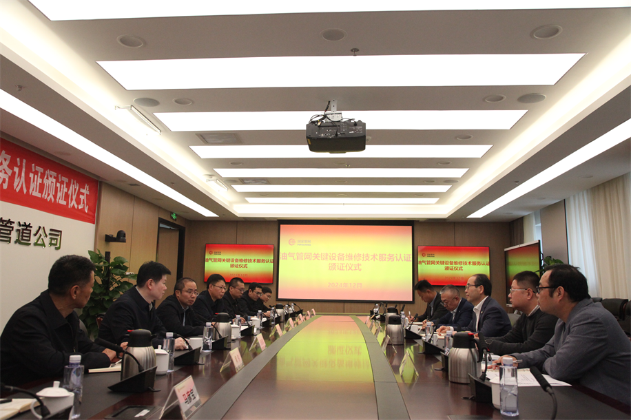 12月25日,中国船级社质量认证向西部管道公司颁发了油气管网关键设备维修技术服务认证五星级证书,这是国家管网集团首张设备维修技术服务认证。