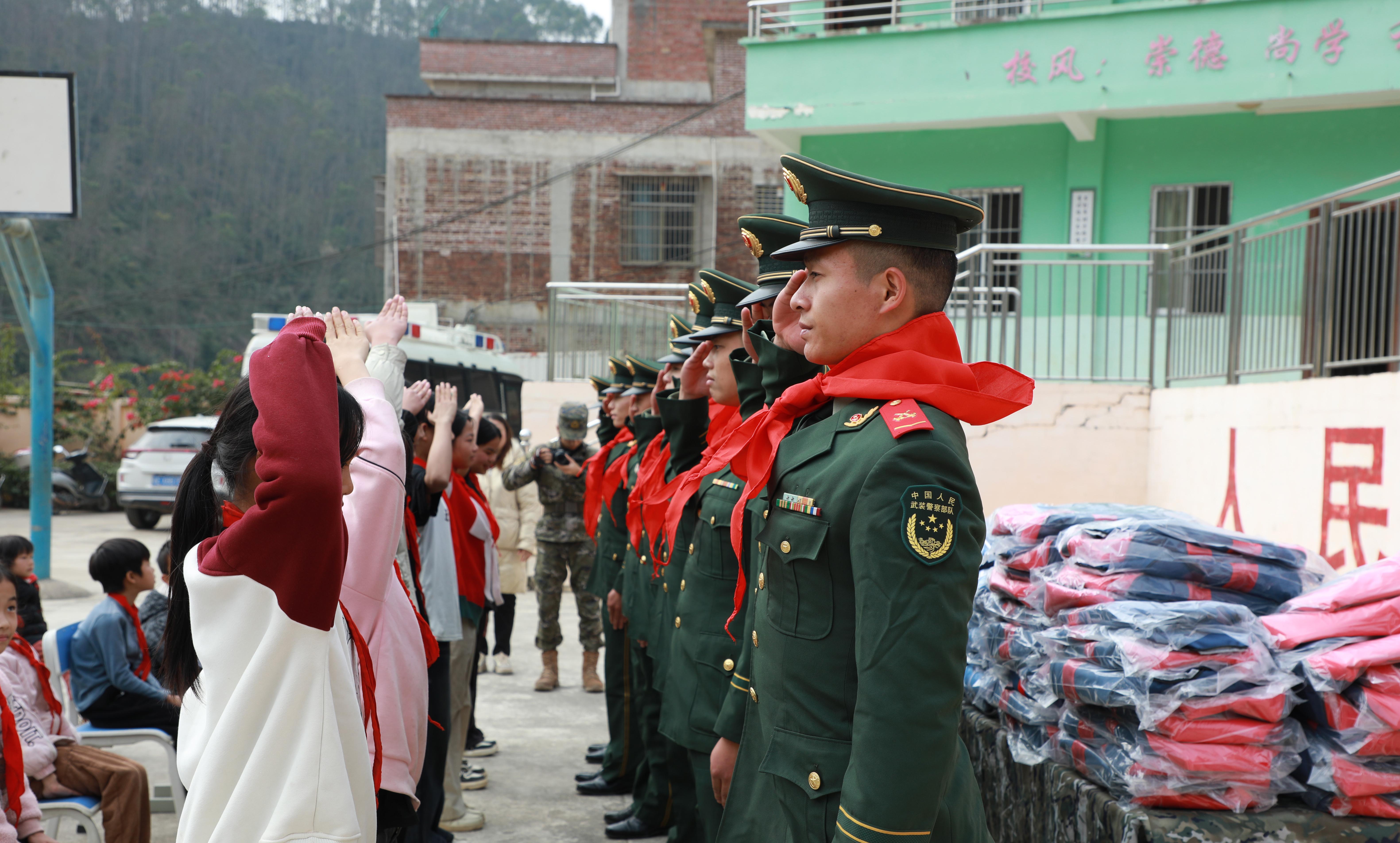 活动最后,武警官兵与小学师生合影留念。活动相关负责人说,此次“情暖冬日”爱心助学活动不仅为孩子们送去了物质上的帮助和精神上的慰藉,更在他们心中播下了爱与希望的种子,这份爱心与关怀将如冬日里的阳光一般温暖而持久,照亮孩子们前行的道路。