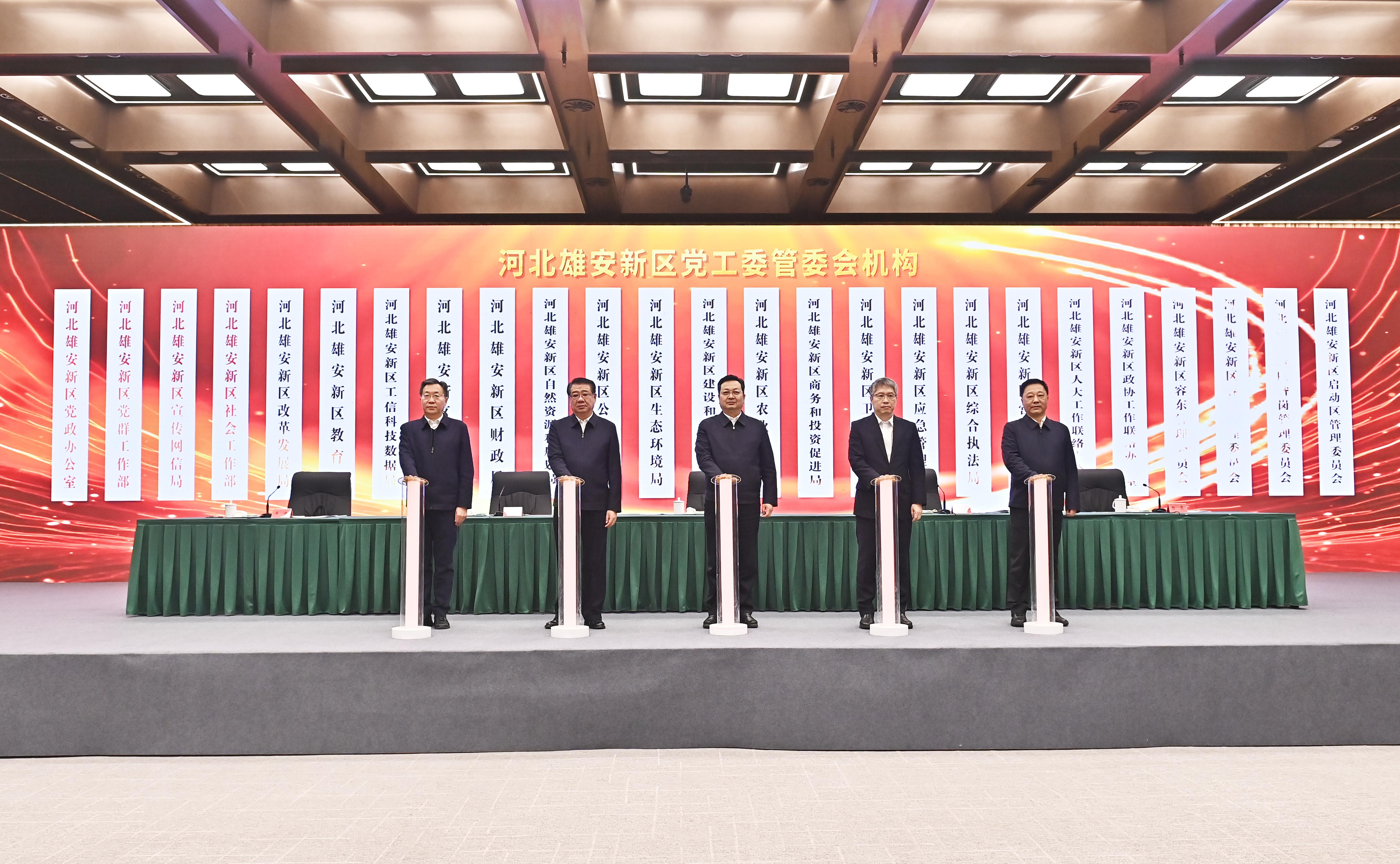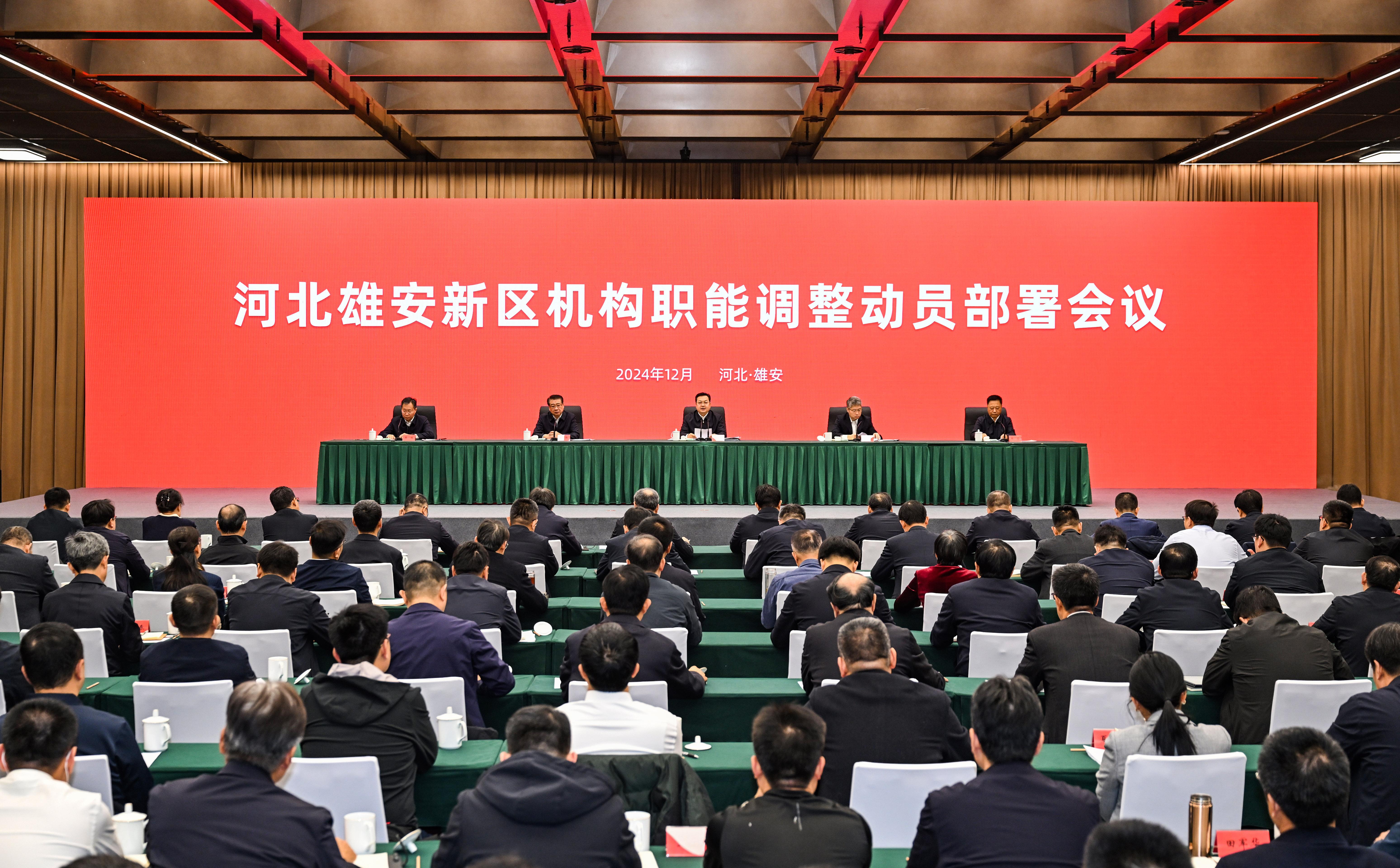 12月28日,河北雄安新区召开机构职能调整动员部署会议,新区工作部门、片区管委会工作机构集中揭牌。即日起,调整后的各部门和片区管委会正式挂牌运行,雄安新区向城市管理体制转变迈出坚实一步,为高标准高质量建设雄安新区提供坚强保障。