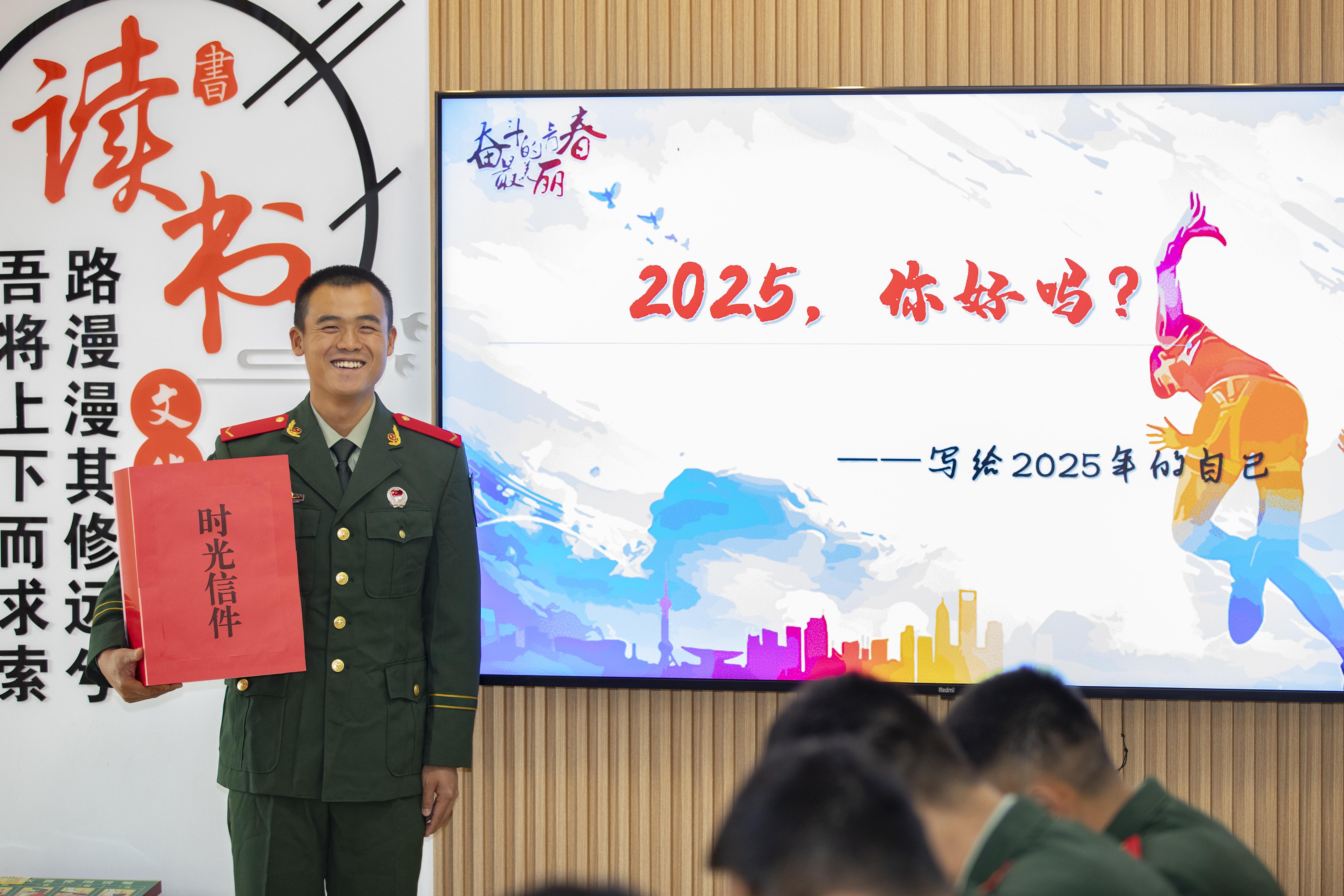 随后,官兵们拿起笔,庄重地写下新一年的目标与期望,将信件仔细折叠,放入2025年的“时光信箱”中封存。这些信件不仅是对未来的期许,更是一份份沉甸甸的责任与动力。