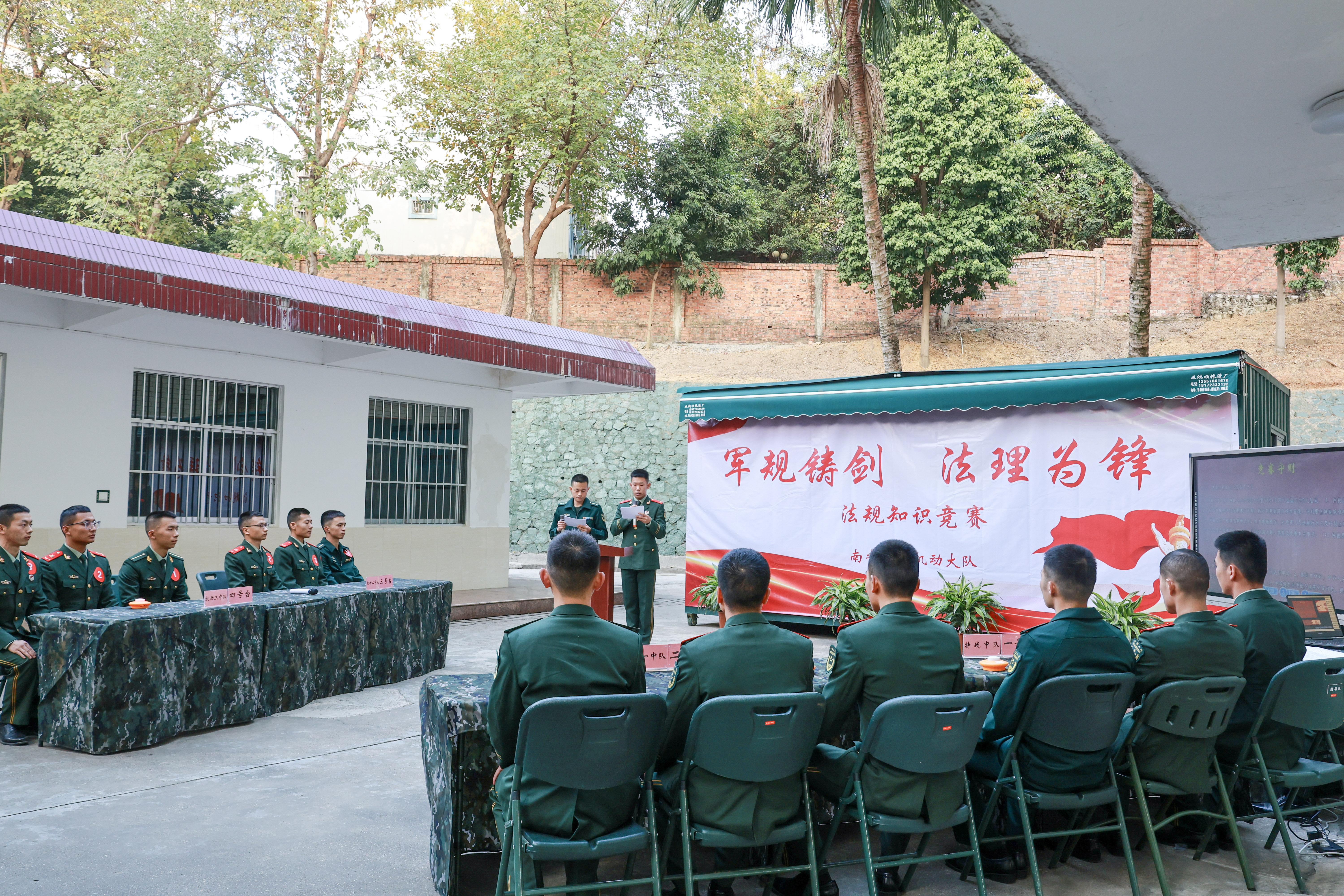 为进一步强化官兵条令法规意识,规范部队各项秩序,近日,武警广西总队南宁支队各基层单位举办法规常识知识竞赛,激发官兵遵法、守法、学法、用法的行动自觉。