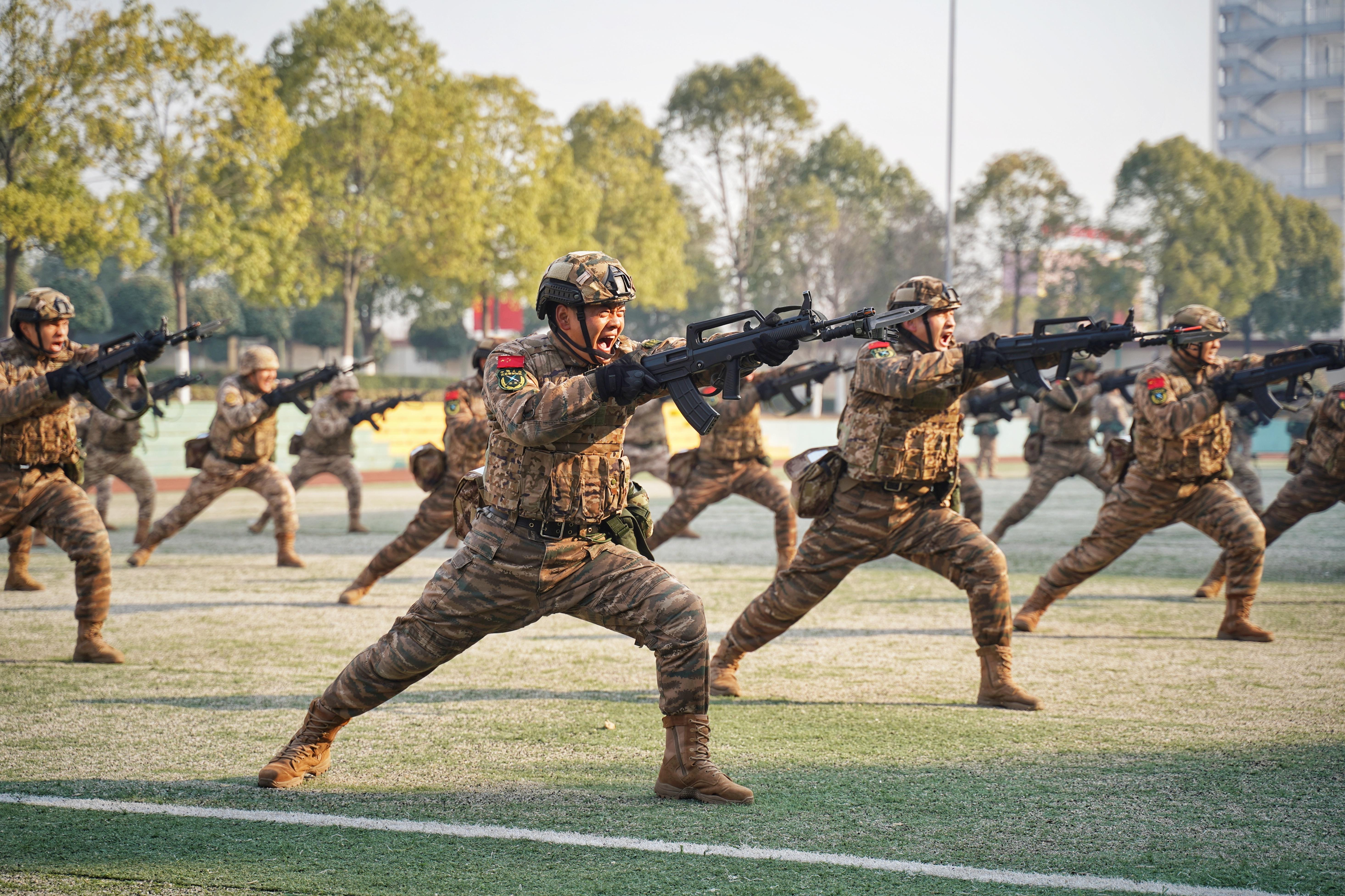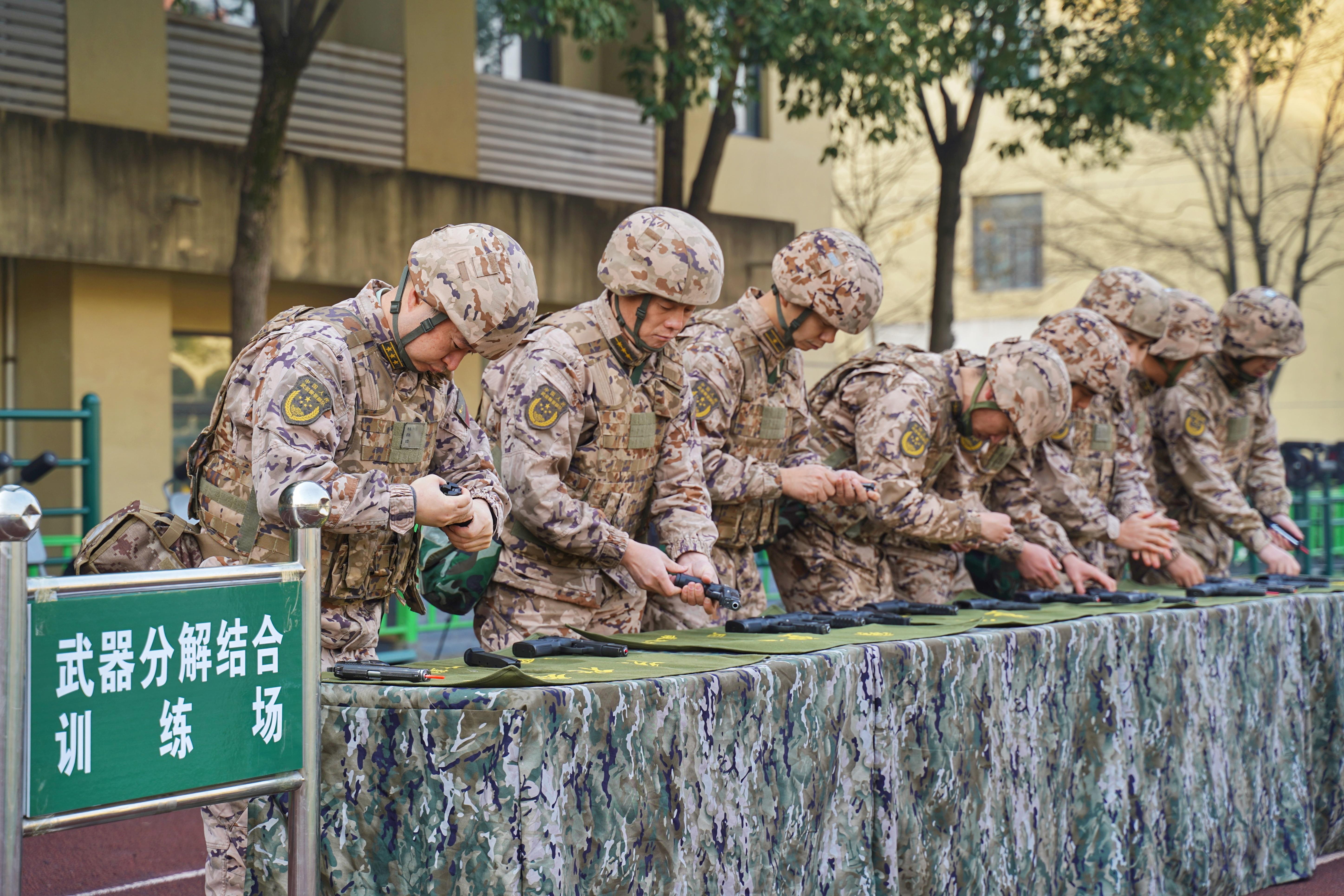 随着开训动员令下达,武警陕西总队汉中支队首长机关和基层全体官兵闻令而动、依令而行,携带战斗装具,迅速奔赴战位,展开手枪射击、武器分解结合、刺杀等课目训练。官兵们以饱满的战斗热情和昂扬的打仗姿态,投入到新年度军事训练中。秦巴腹地座座军营内呈现出一幕幕蓬勃奋进的火热练兵景象。