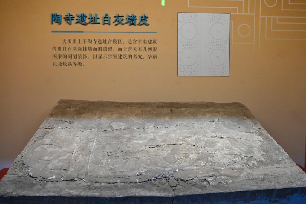 “据推测他们先在墙体涂草拌泥,再抹白灰,然后用工具压出几何纹饰。”讲解员曹萌萌说,陶寺先民对宫殿的外墙、内墙和地面进行了装饰和处理,不仅令建筑整体看起来光洁,还改善了室内亮度,并有效防潮。