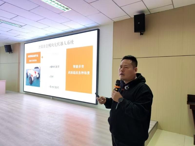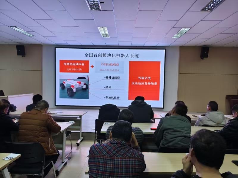 培训会上,觉物科技(深圳)有限公司工作人员详细讲解了该公司研发的农业机器人的工作原理、使用场景、技术特点及未来展望。