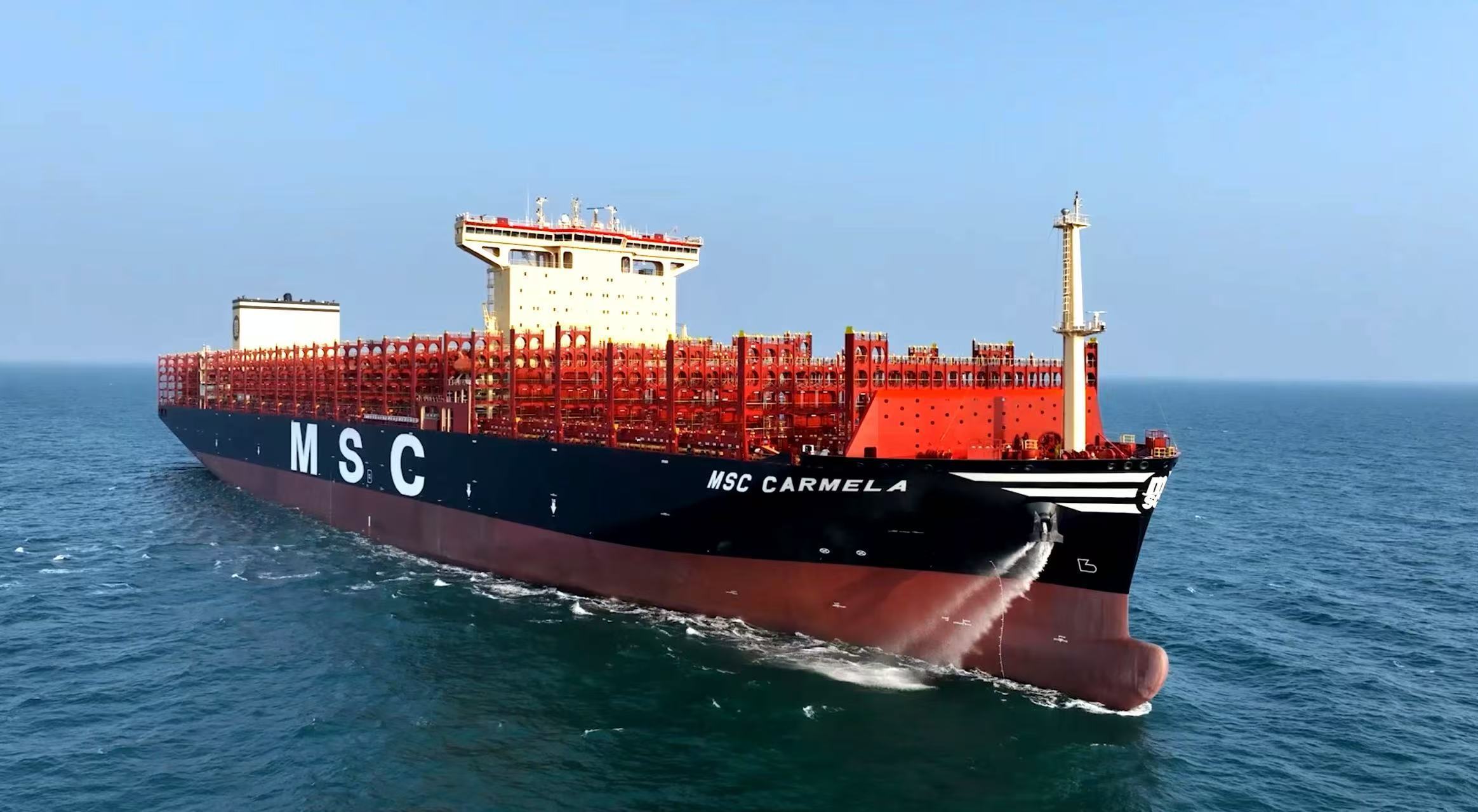 1月8日,中国船舶大连造船联合中船贸易,为MSC地中海航运建造的LNG双燃料16000TEU集装箱船“MSC CARMELA”(卡梅拉)轮命名交付,这是大连造船2025年成功交付的首艘船舶。