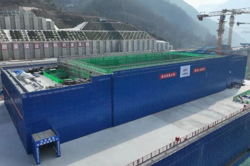 镇安西站地处秦岭腹地,施工单位严格落实环保要求,采用钢制可周转材料施工,减少环境污染;采取钢筋加工降噪屏障、洒水车专人降尘等措施,实现环保达标、绿色高铁建设目标。