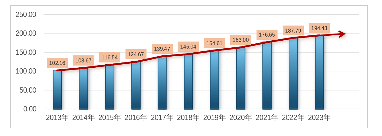 “首科指数2024”显示,2013—2023年,首科指数增长态势明显,总指数得分从2013年的102.16分增至2023年的194.43分,增幅达92.31%,年均增长率达6.76%。