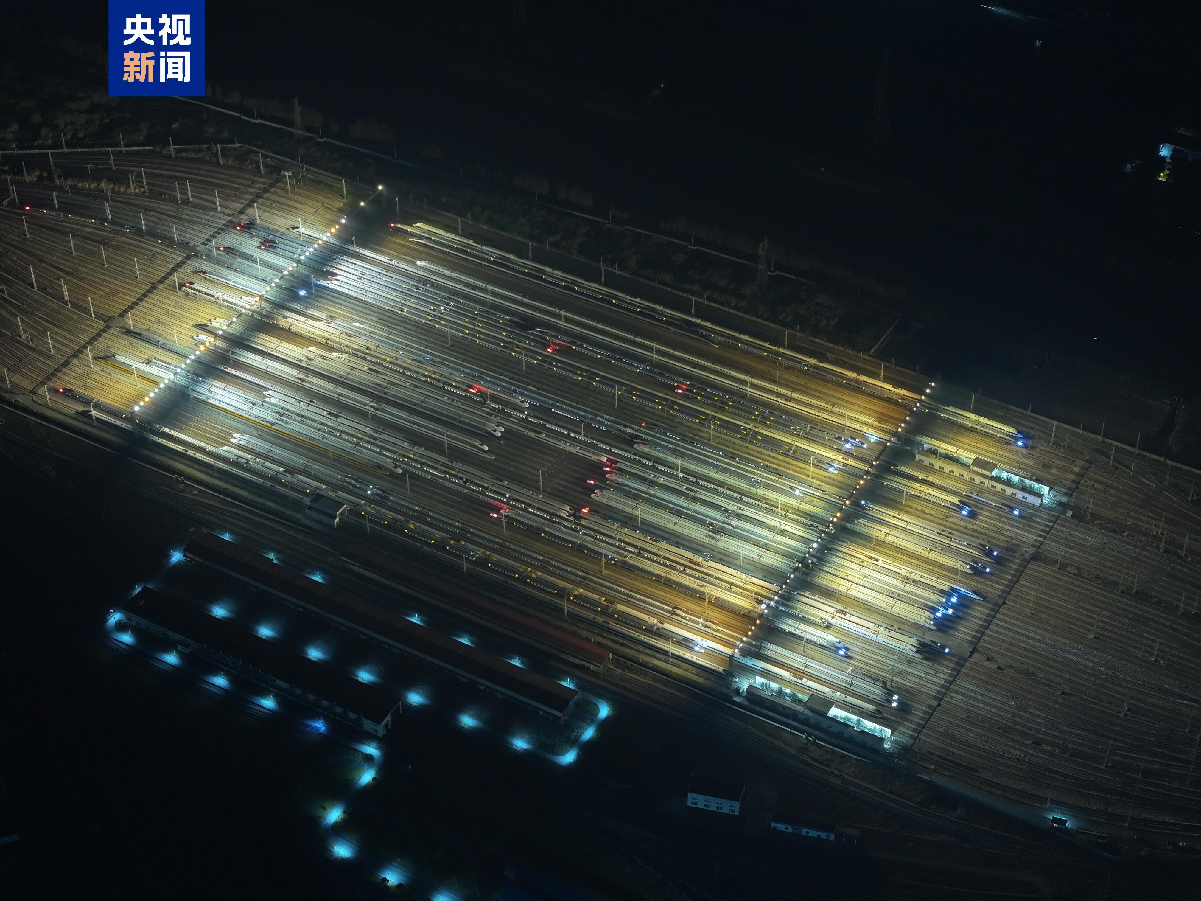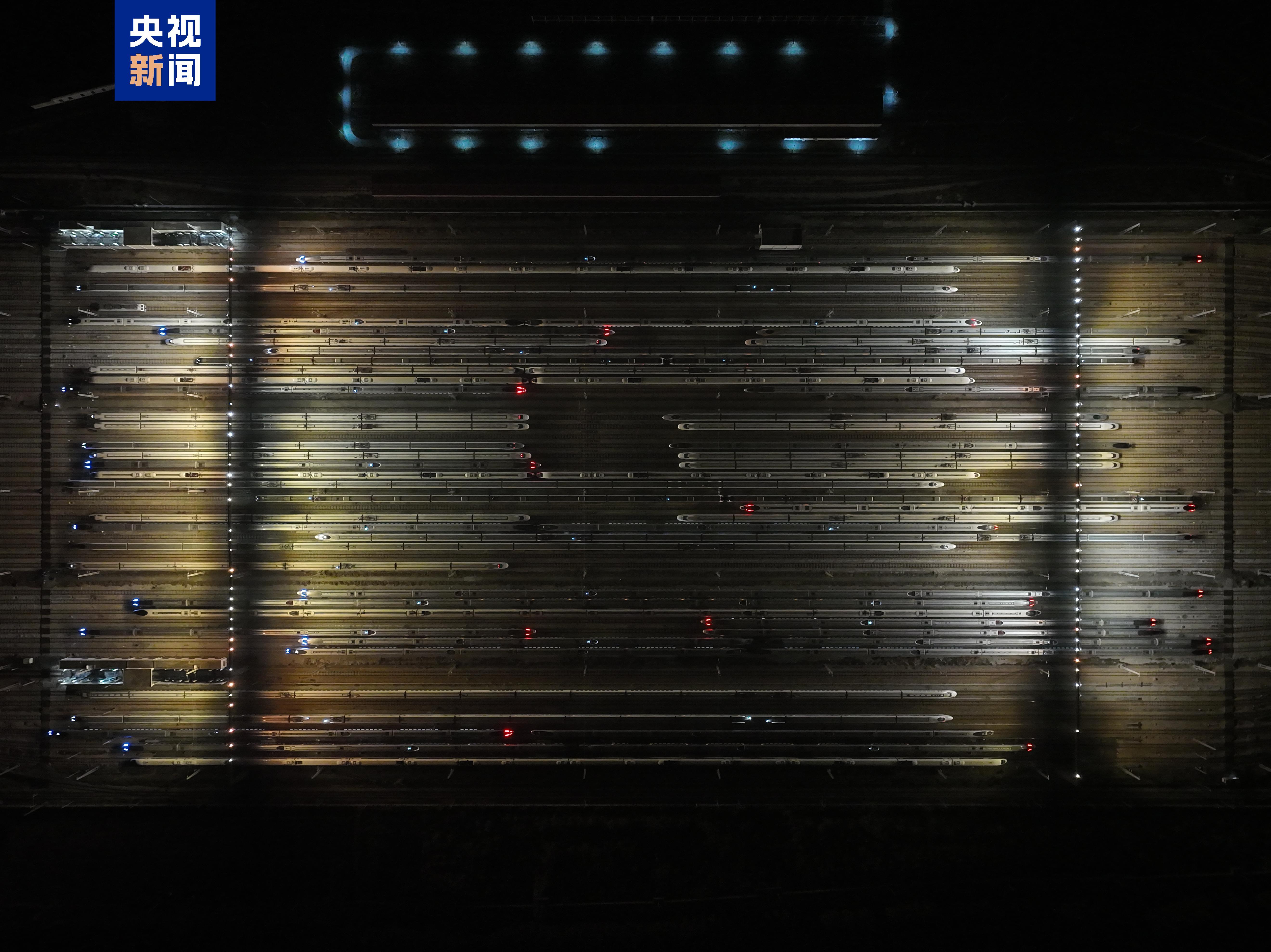 2025年春运即将拉开序幕,日前,国铁广州局广州动车段集结百组列车整装待发,启航迎接春运。