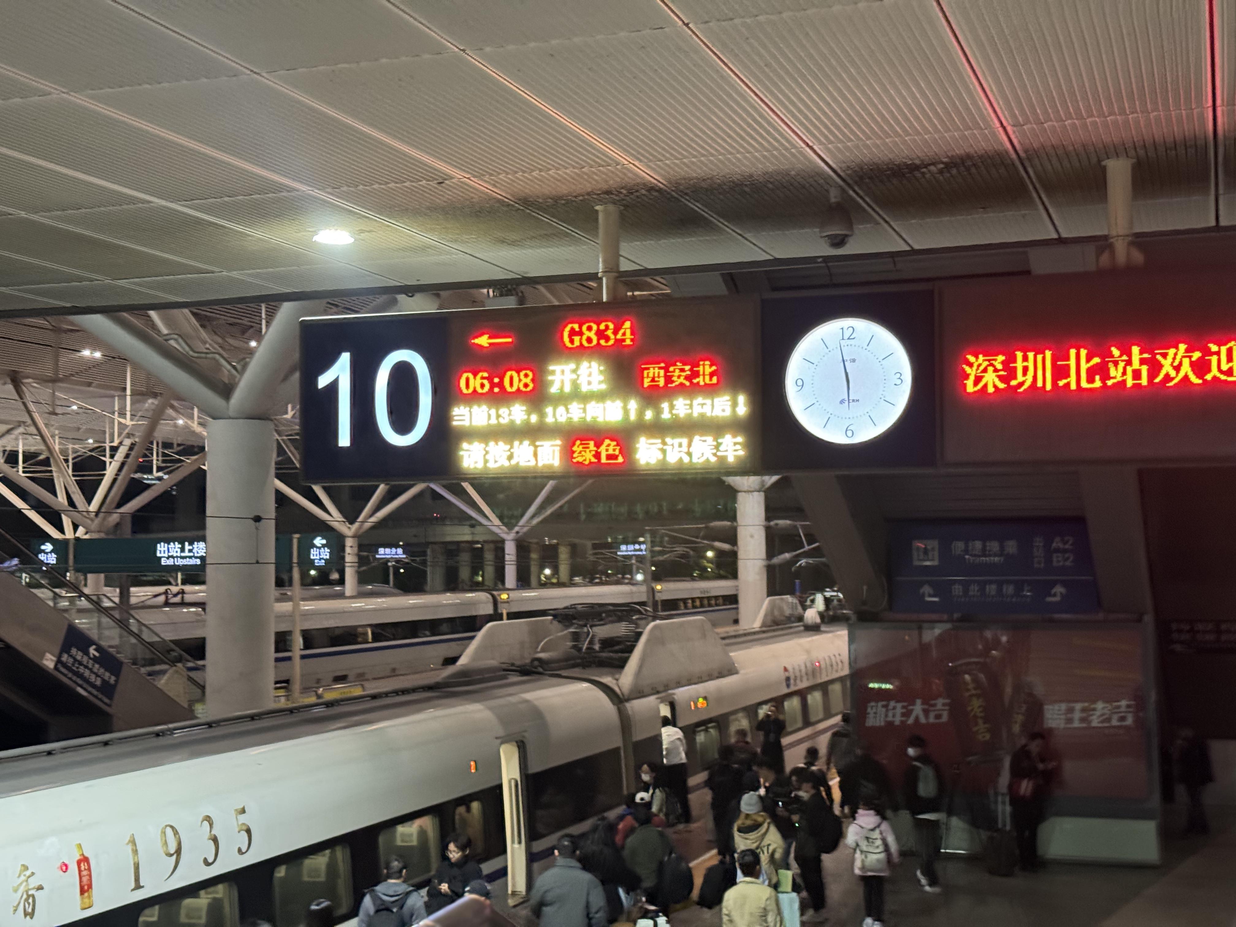 1月14日6时08分,随着G834次列车在深圳北站10站台缓缓启动,为期40天的春运正式开始。