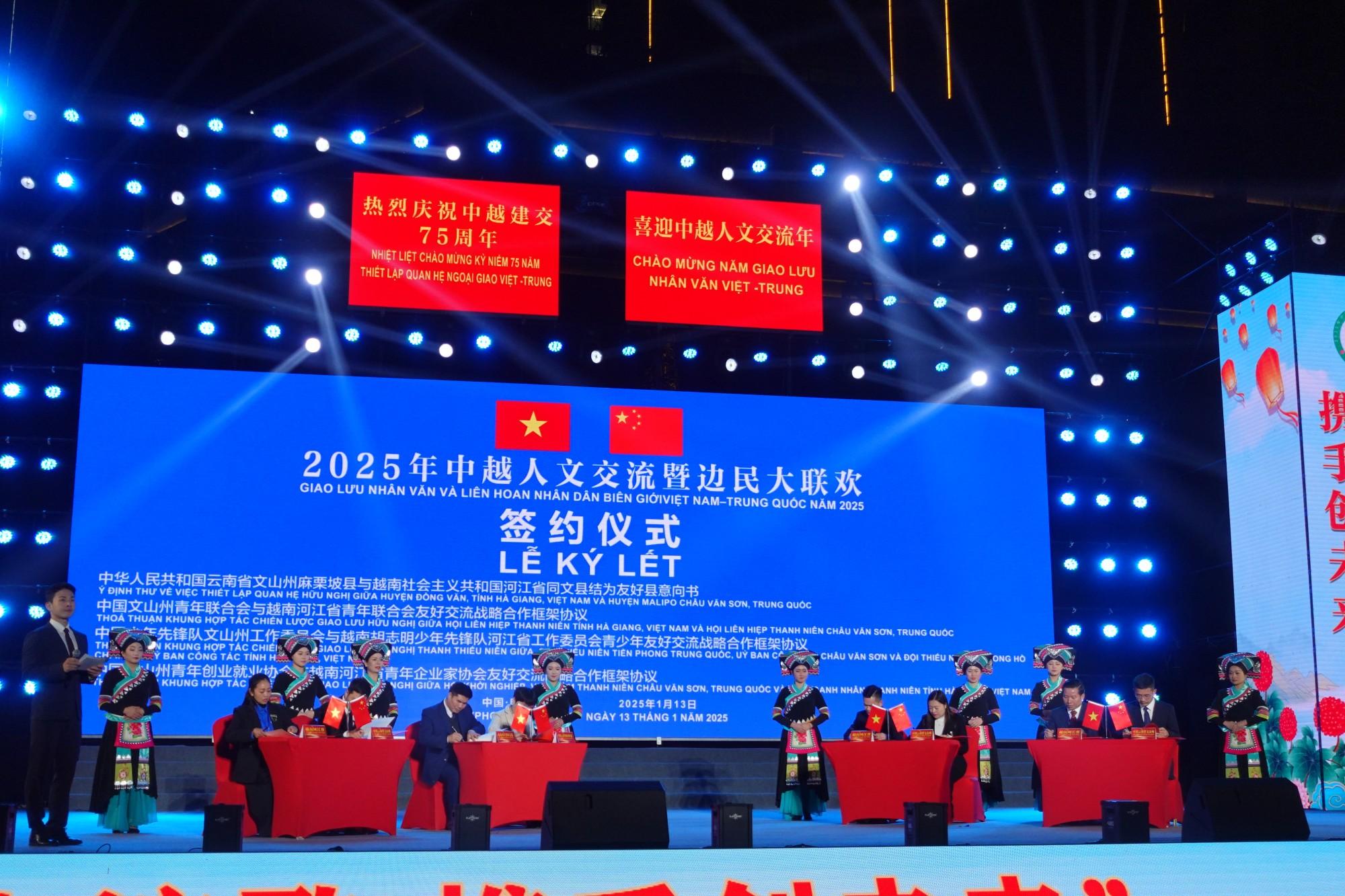 启动仪式上,文山州麻栗坡县与越南同文县代表签订建立友好城市关系意向书;越南胡志明河江省青年联合会与文山州青年联合会代表签订青联共建协议;越南胡志明河江省少年先锋队与中国少年先锋队文山州工作委员会代表签订少先队共建协议;越南河江省青年企业家协会与文山州青年创业就业协会代表签订青年创业就业协会共建协议。