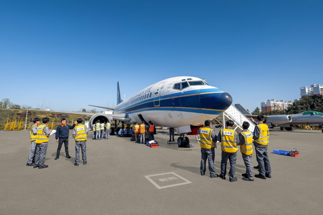 在成都航院,学校还建立了符合产业需求的教学、培训、科研需要的,包含歼8、波音737在内的20余架飞机,50多台各型航空发动机,40多套空客A320/波音B737NG模拟器等虚实结合的训练设备及结构修理等各类实验室。校园内,随处可见身着工装开展实训的学生。去年12月13日,由该校承办的“中银杯”四川省职业院校技能大赛飞机维修项目完赛。本次大赛的裁判由来自航空维修行业内的知名专家组成,与一线“大咖”的频繁互动也不断加深着学生们对技术的理解。