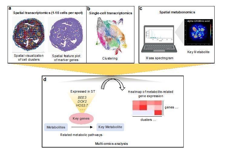 马雄风研究员团队以陆地棉标准系TM-1为研究材料,绘制了棉花纤维早期发育的单细胞转录组图谱、空间转录组图谱以及空间代谢组图谱,构建了一个多层次的棉花纤维起始发育的动态调控网络,不仅能以高分辨率捕捉纤维细胞发育过程中的基因表达模式,还能揭示与基因表达密切相关的代谢变化,填补了目前在纤维细胞发育研究中的技术空白。