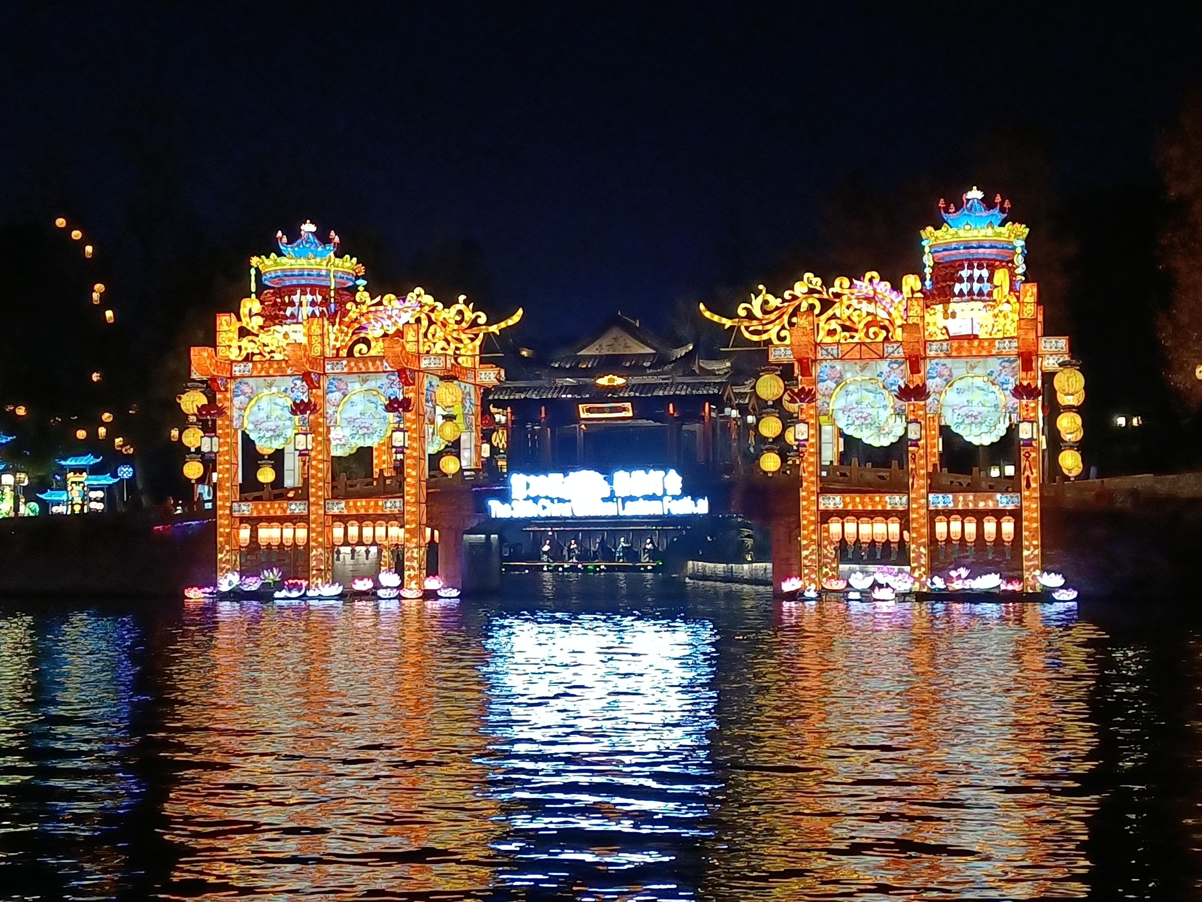 秦淮河畔华灯初上,历史与现代交相辉映。1月21日晚,第39届秦淮灯会亮灯仪式在南京夫子庙白鹭洲公园水上舞台举行。