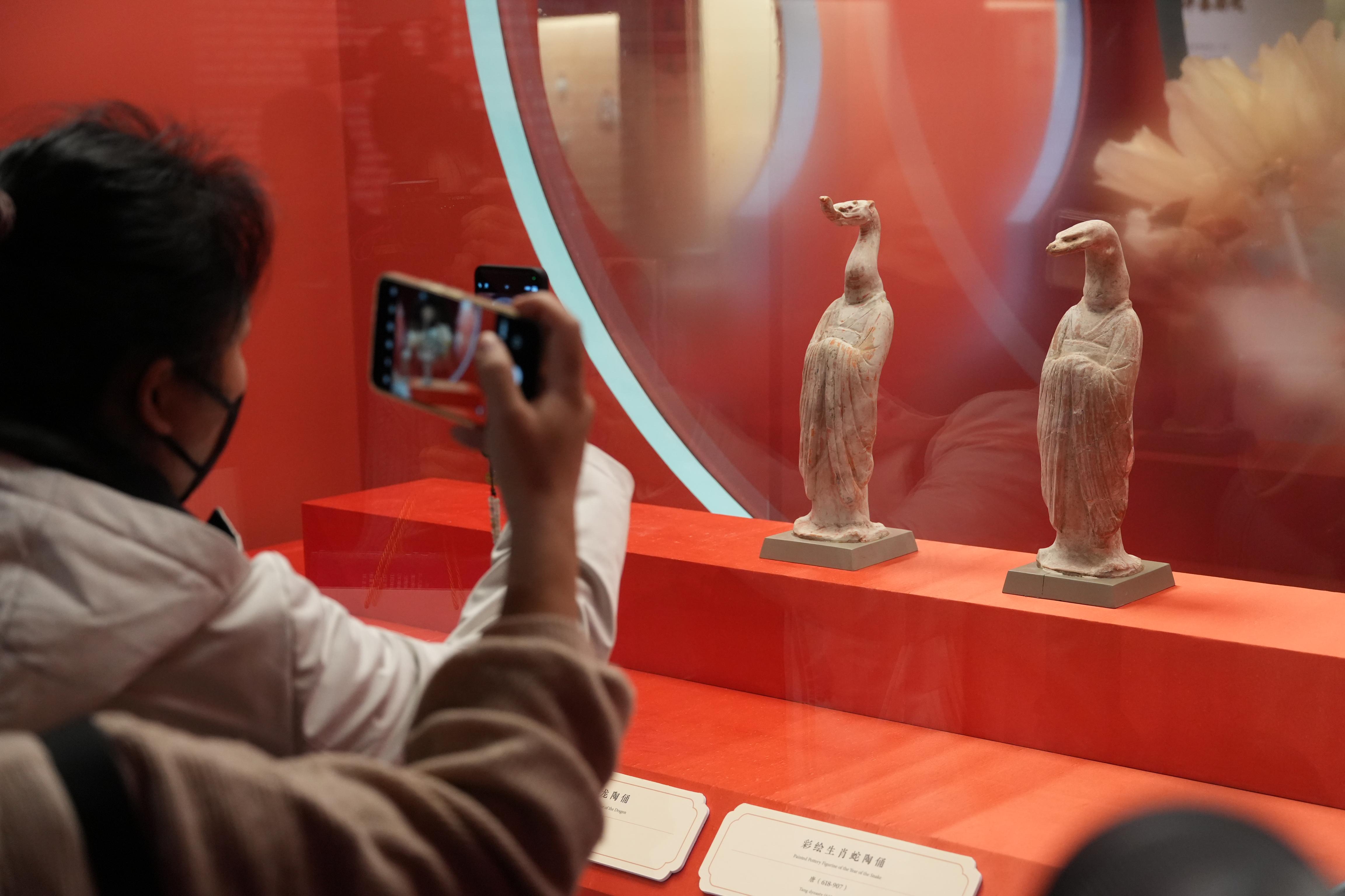 多件国家博物馆馆藏重点文物、观众喜爱的“明星文物”亮相展览,包括彩绘十二生肖陶俑、妇好鸮尊,以及充满新春氛围感的桃花洞釉灯笼瓶、白玉“天官赐福”佩、“好酒”白釉盘等。