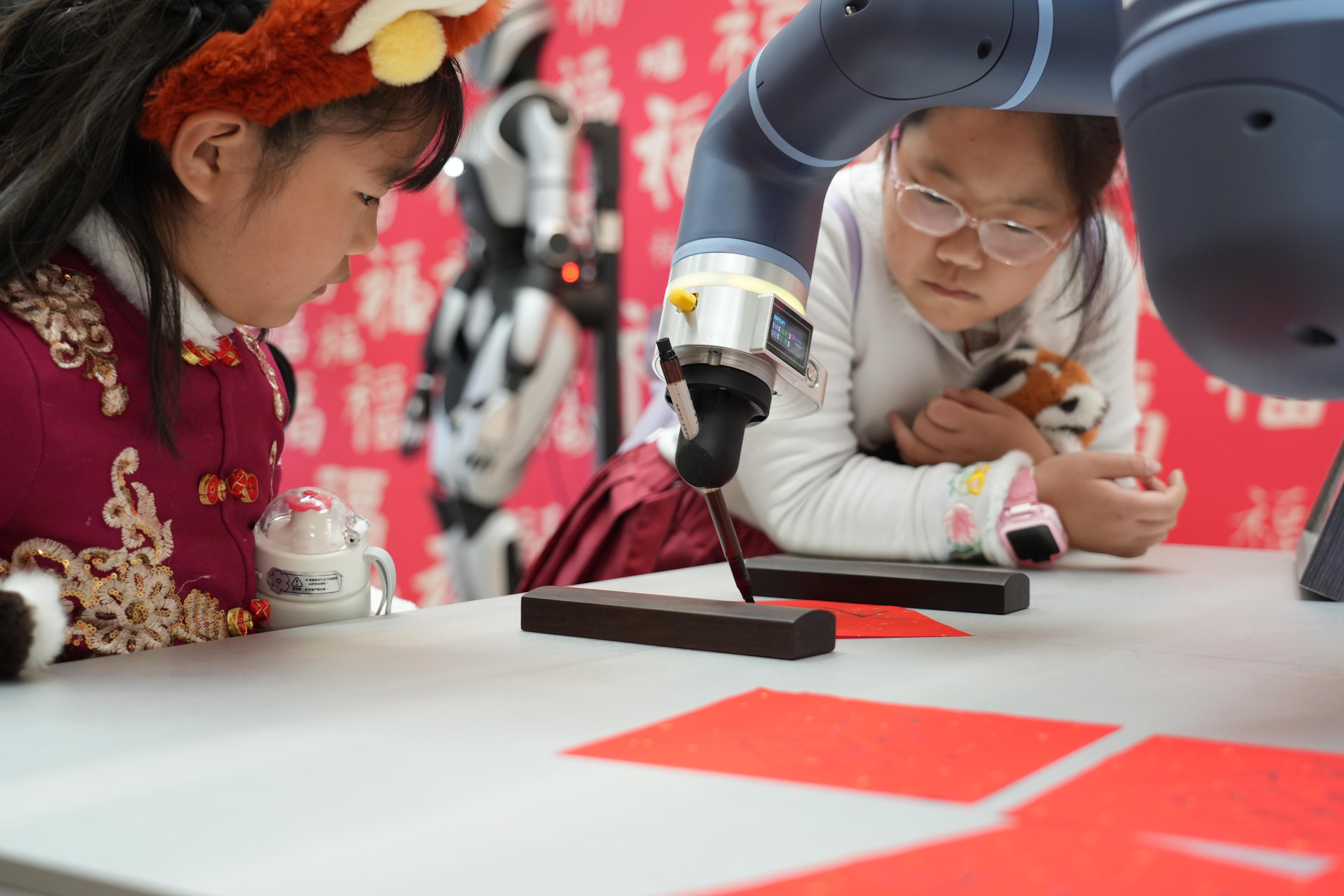 这台能自如地握住毛笔、在撒金红纸上熟练写出不同字体“福”字的机器人,是由南京一家高科技公司研发而成的。