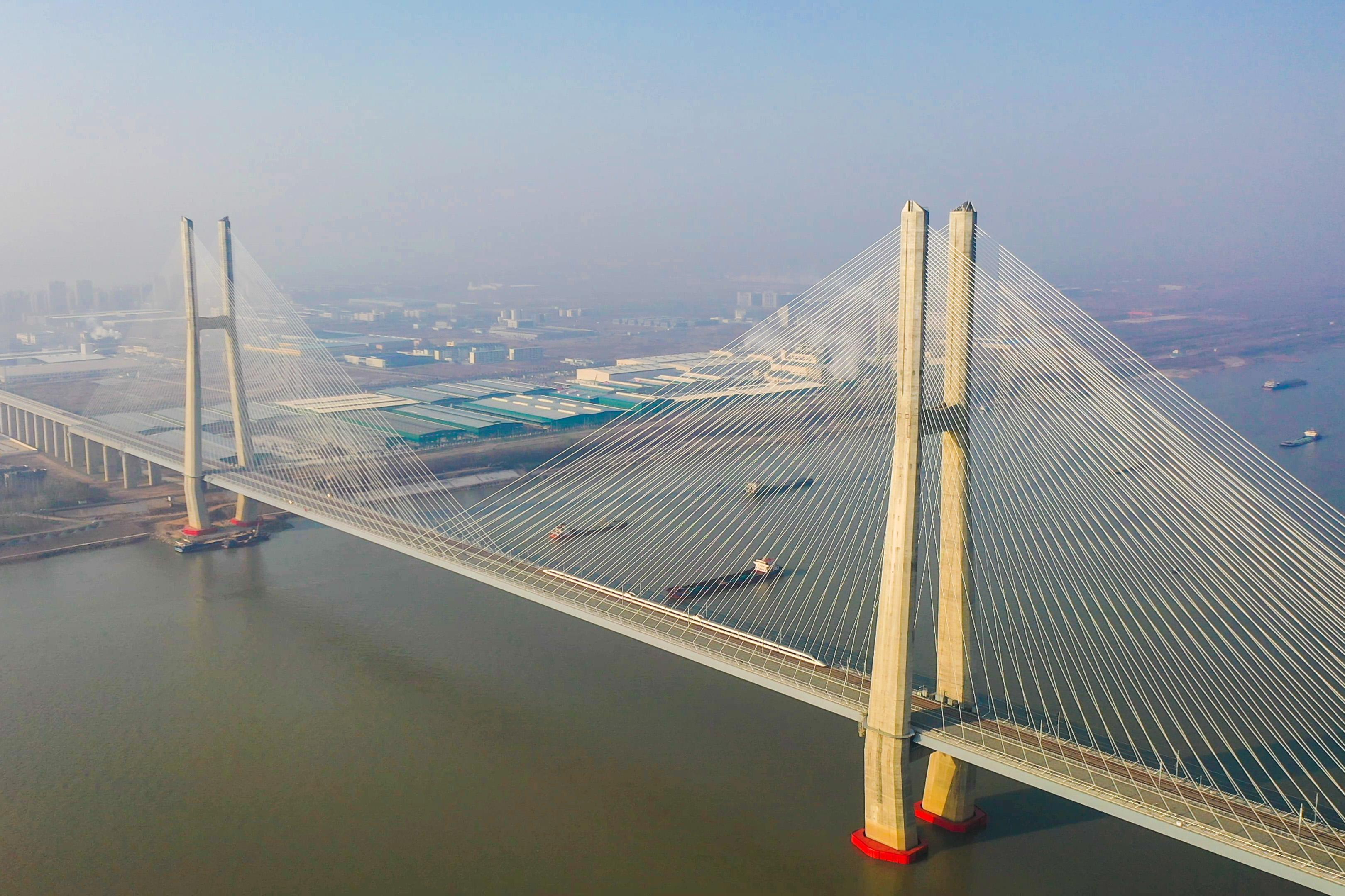京港高铁鳊鱼洲长江大桥是国内首次采用交叉索设计的斜拉桥,304根斜拉索横跨江面,桥墩直插长江航道,滔滔江水由此穿流而过,没有激起层层波涛却会影响桥梁整体稳定。