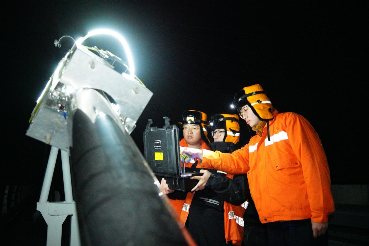 1月23日零点时分,氤氲雾气从长江江面缓缓飘起,鳊鱼洲长江大桥上江风呼啸,程亚卓操纵着斜拉索机器人,沿桥拉索稳稳向上爬升。