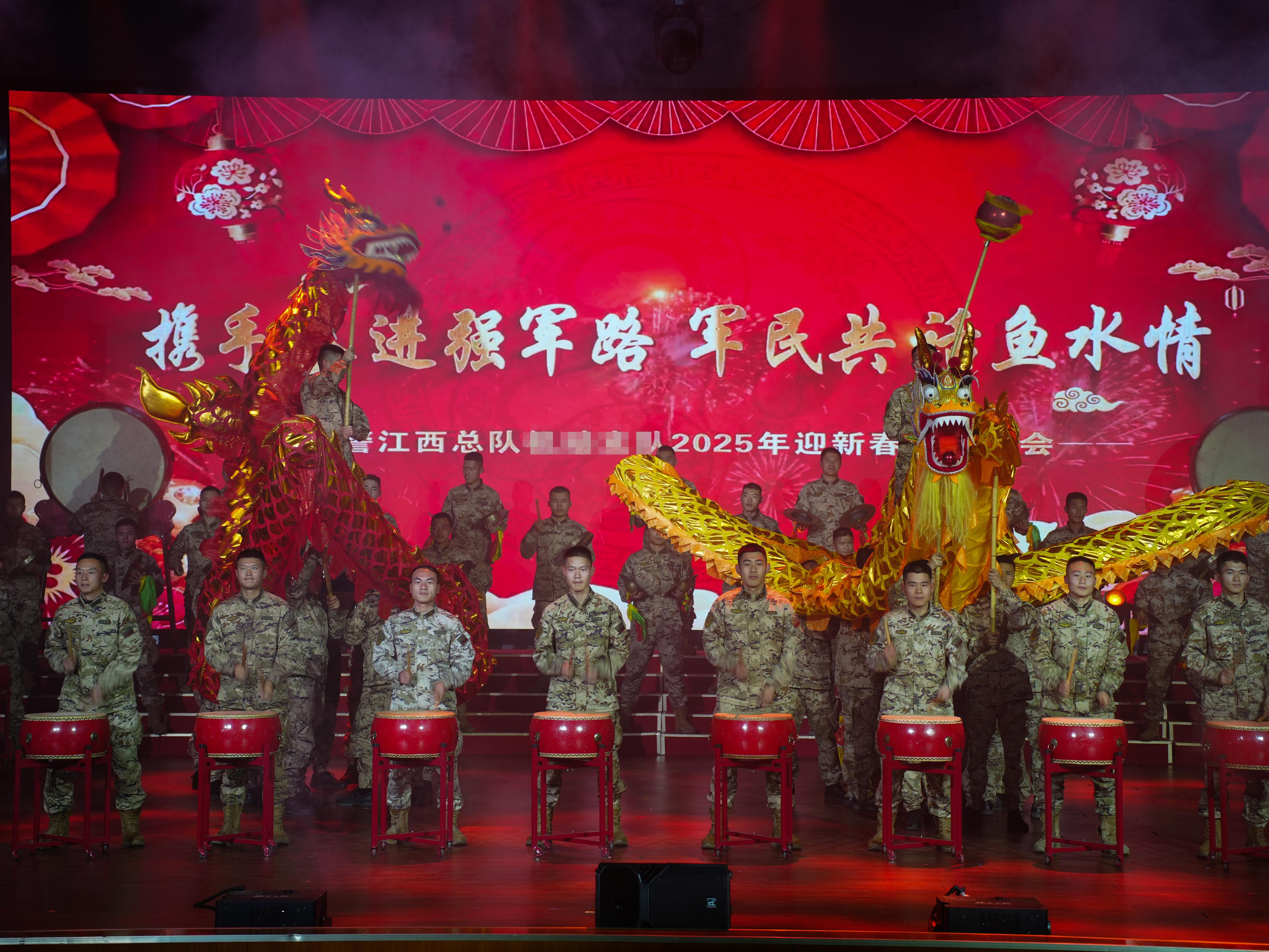 晚上6时,乡亲们在前排就座,一场双拥晚会即将开始。随着激昂的鼓点响起,一首《战鼓催征》正式拉开了晚会的帷幕。鼓声紧密急促,似千军万马奔腾而来,又如汹涌潮水滚滚向前。优美婉转的歌曲演唱、活力四射的舞蹈表演、幽默的军营小品……乡亲们的目光被牢牢吸引,沉浸其中。