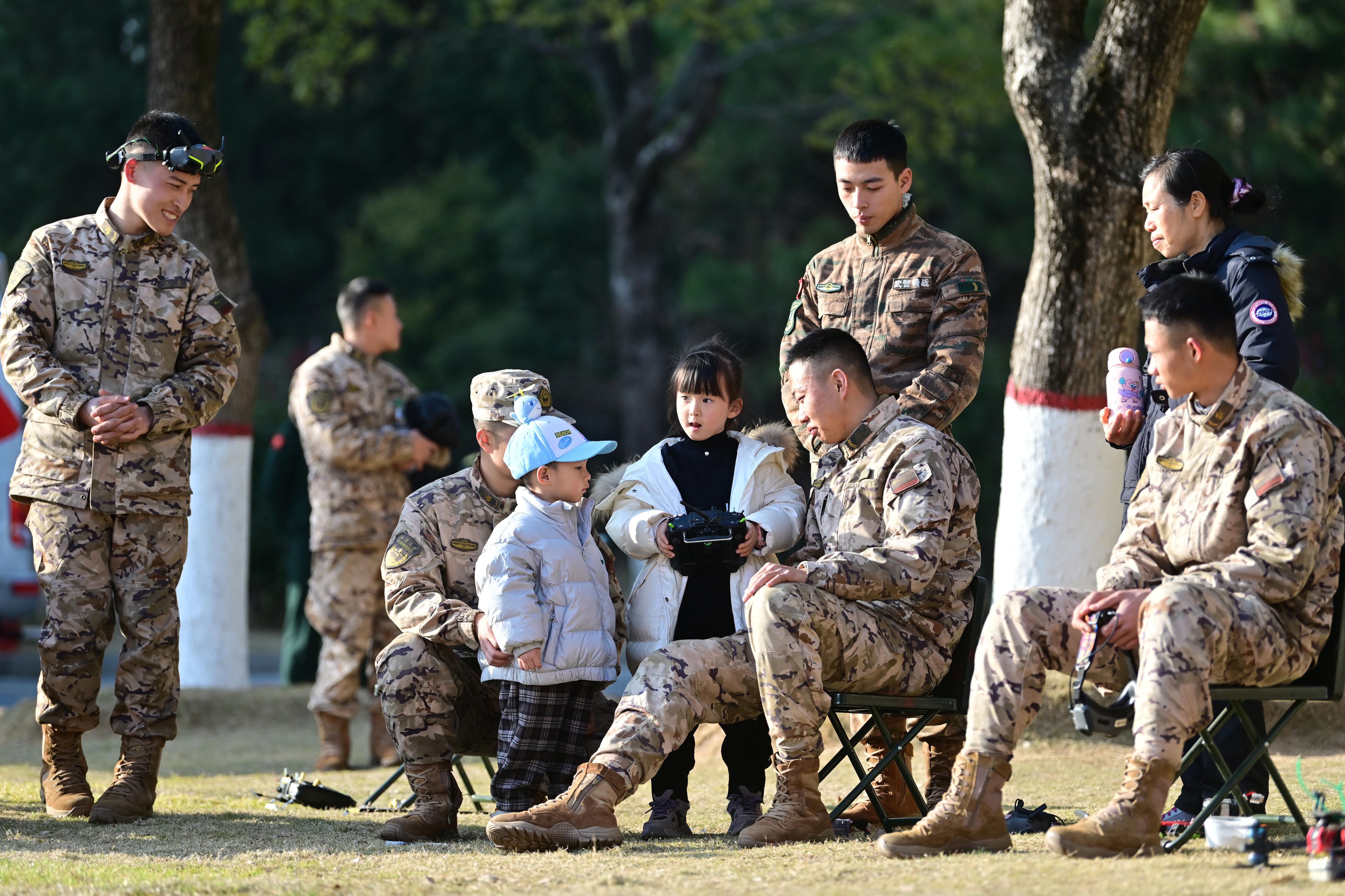 “哥哥,我可以跟你合影吗?”活动现场,一名4岁的小男孩走到军营合影打卡点旁,向负责人、中士邓成安轻声问道。孩子奶奶说,他的父母在外打工,平时跟着她一起生活。孩子性格比较腼腆,在家一直吵着说想跟兵哥哥合影,今天见到英姿飒爽的武警哥哥特别开心。