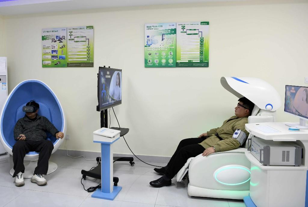 1月23日,在中国铁路南昌局集团有限公司向塘机务段心理减压中心,休班的火车司机正在进行减压体验。为进一步落实关爱职工心理健康工作,共同营造和谐健康的工作氛围,现有近2000名火车司机的向塘机务段着力打造职工心理减压中心,帮助职工缓解心理压力。