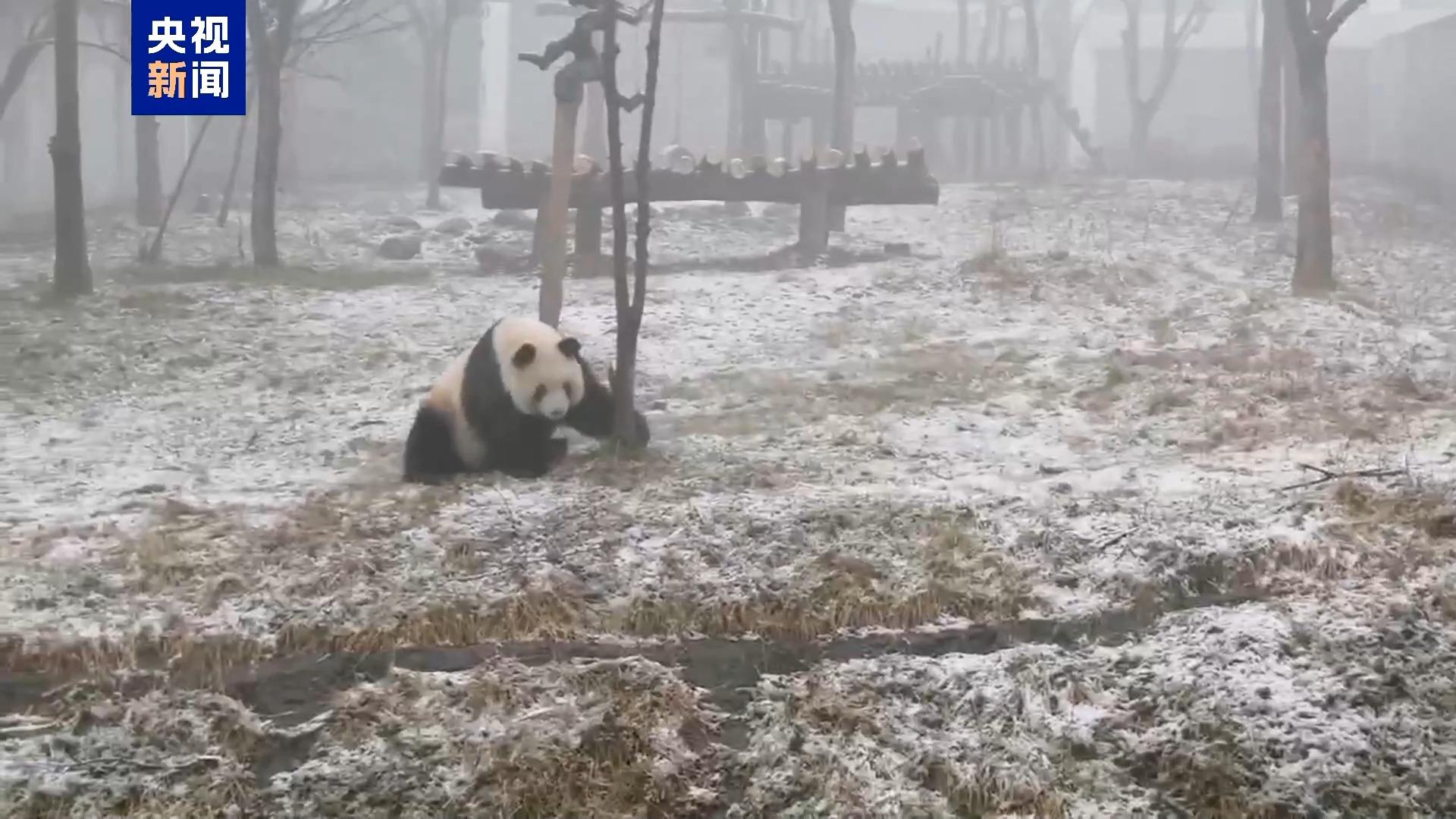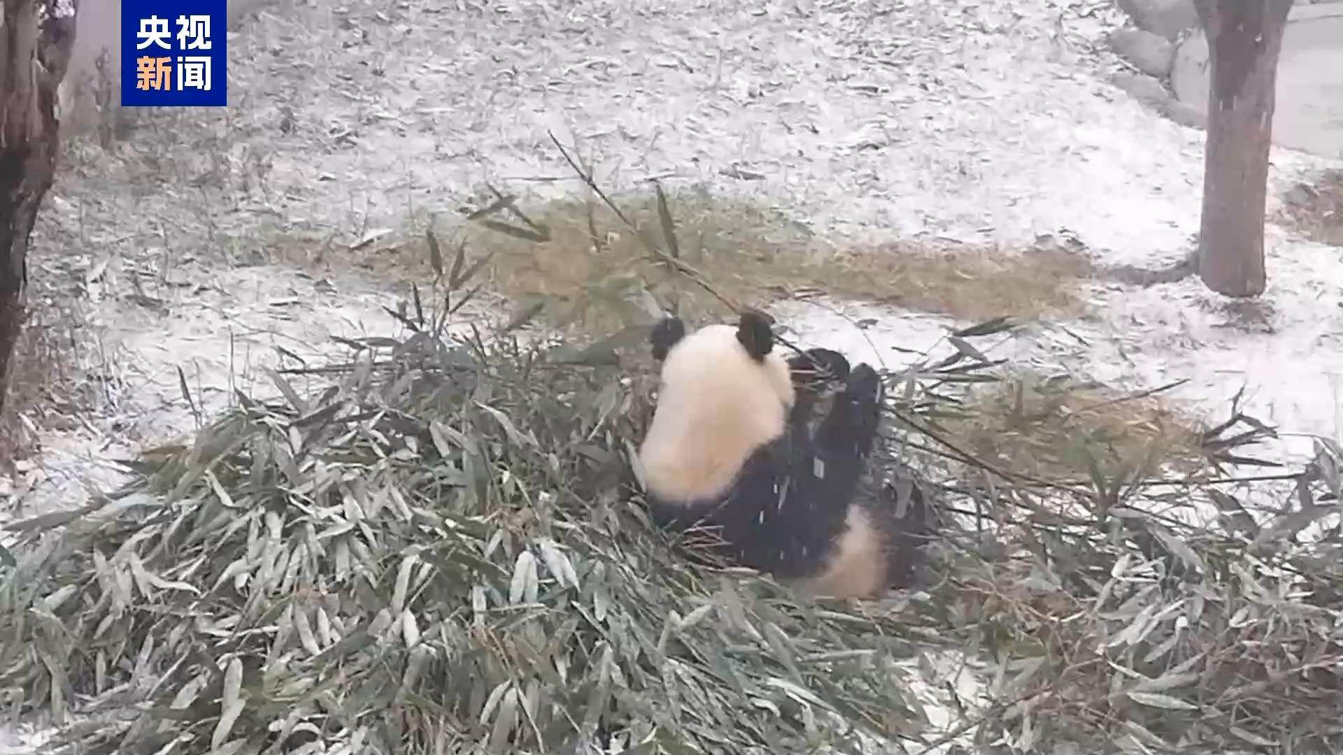 不一会儿,吃完竹子的它就在雪地里撒开了欢,不停地跑来跑去,翻着跟头,像是终于等来了这场久违的雪。