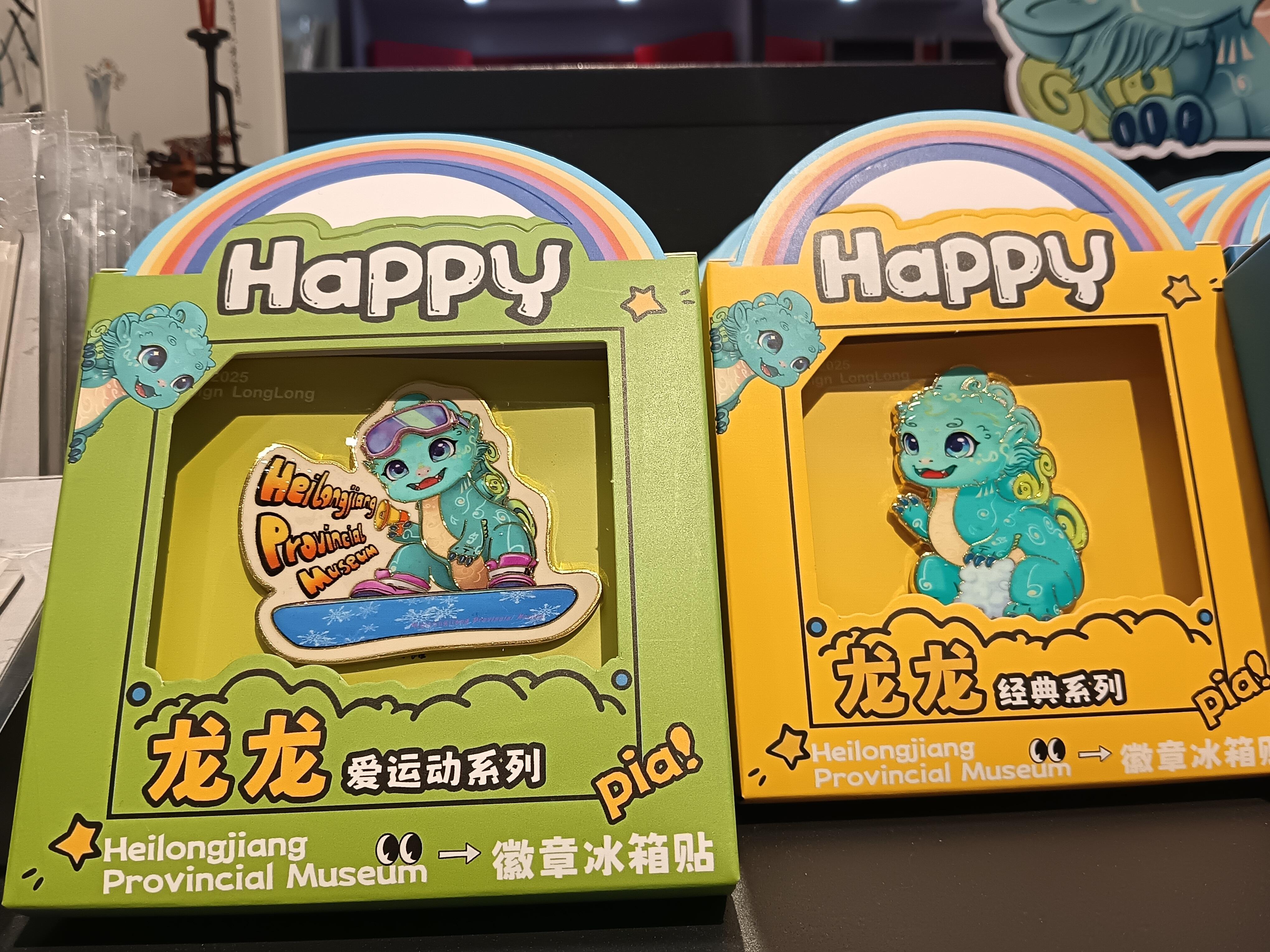 活动现场还展示了众多新年文创产品,如融合AR技术的冰箱贴、书签、钥匙扣,以馆藏文物为灵感设计的首饰,“龙龙”系列的Q版毛绒玩具、保温杯等。