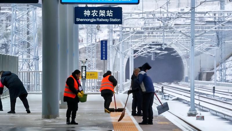 神农架车站及时清理广场、站台上的积雪,在旅客通道铺设防滑草垫,确保旅客乘降安全。宜昌东、襄阳、十堰等站提前铺设防滑垫,武汉、汉口、信阳东等站候车室开足暖气,保证热水供应,让旅客舒适乘车。各站与当地交通部门及时沟通,做好列车与地铁、公交、出租车的接驳,保证旅客有序换乘。
