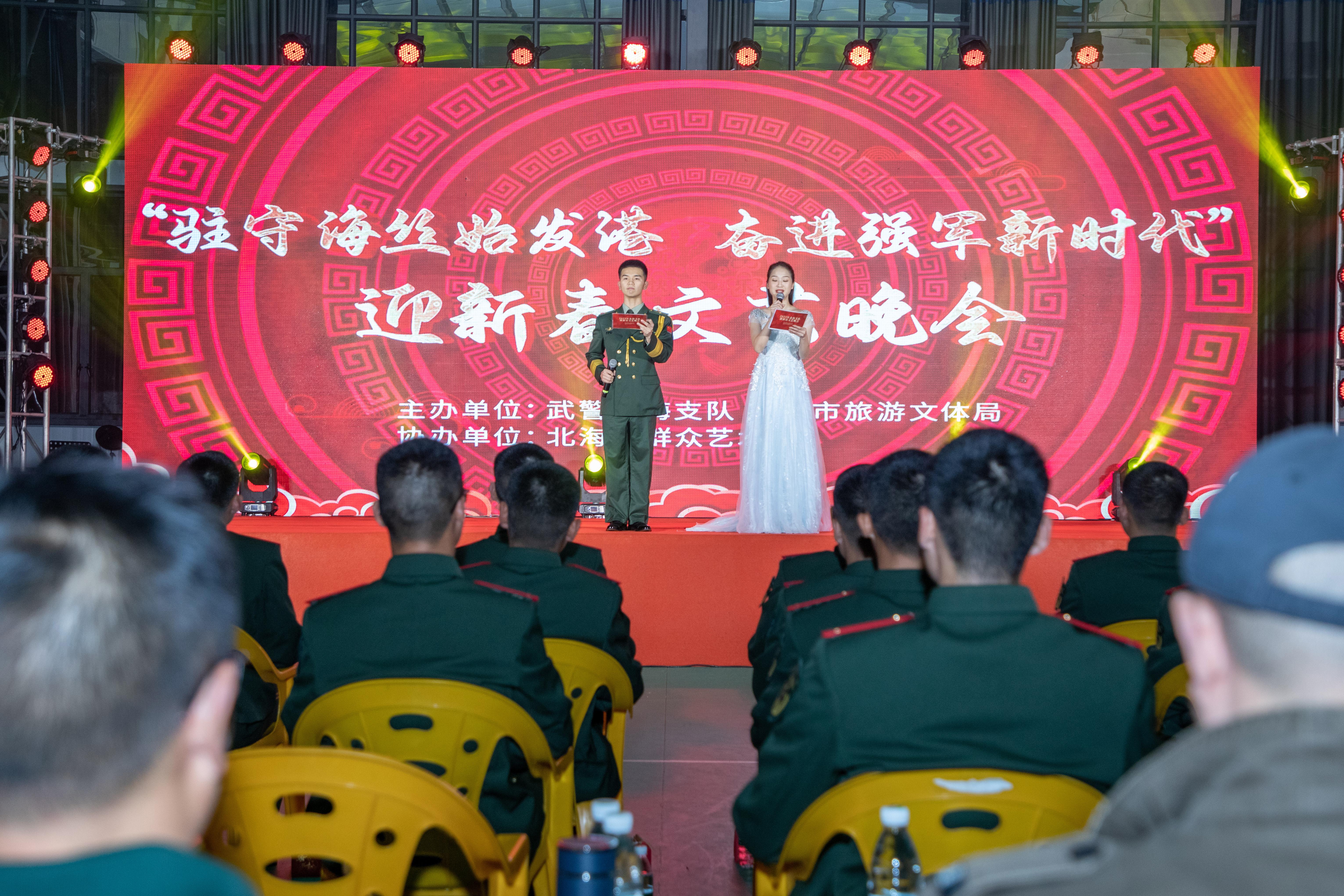 春节前夕,武警广西总队北海支队举办“驻守海丝始发港 奋进强军新时代”迎新春文艺晚会,支队官兵和家属们欢聚一堂,共贺新春佳节。