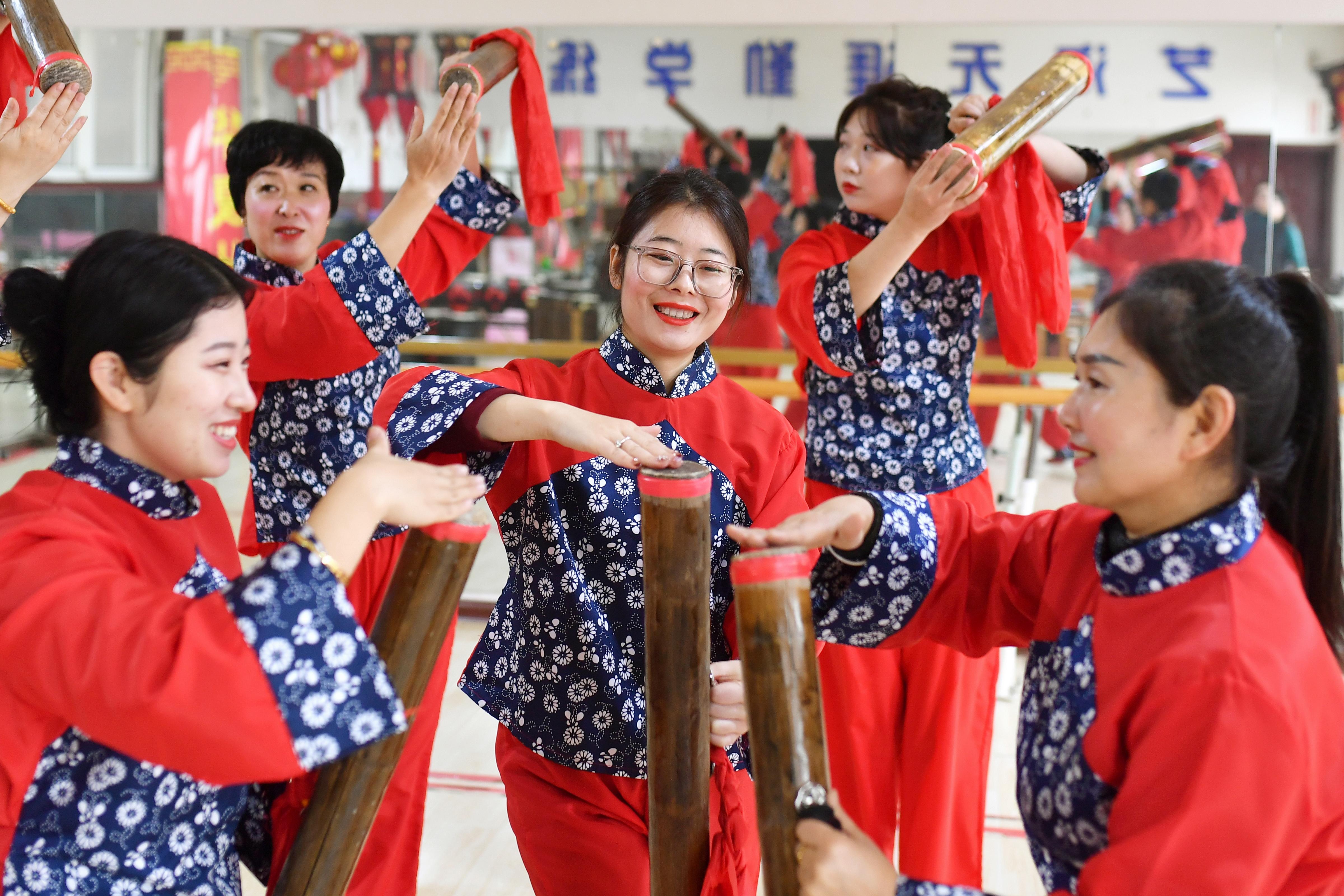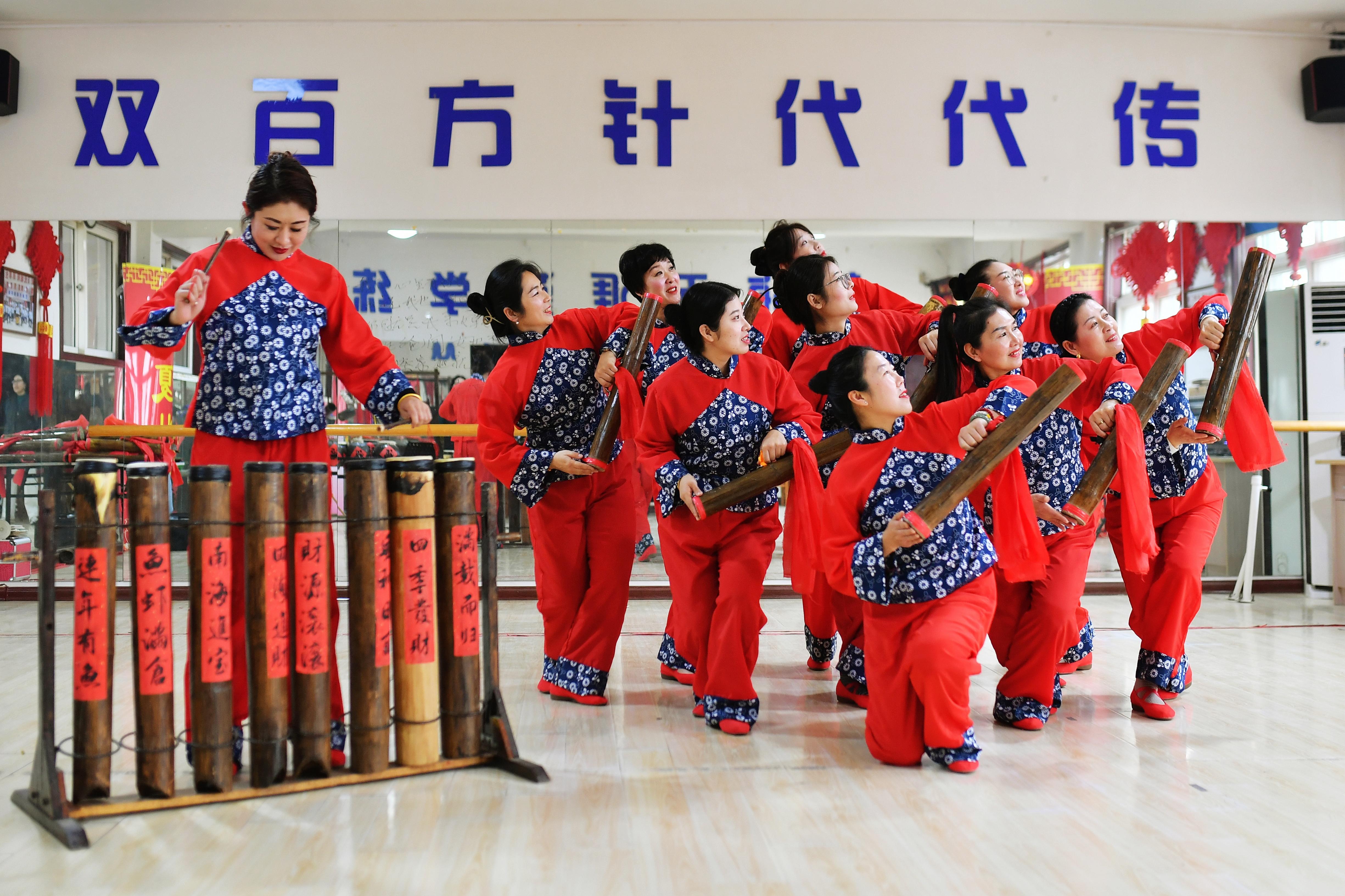 蛇年春节将至,渔家歌舞练起来。1月26日,在山东省青岛市城阳区红岛街道宿流社区,伴随流传数百年的鱼皮鼓曲牌,渔家女们载歌载舞,喜迎新春佳节。