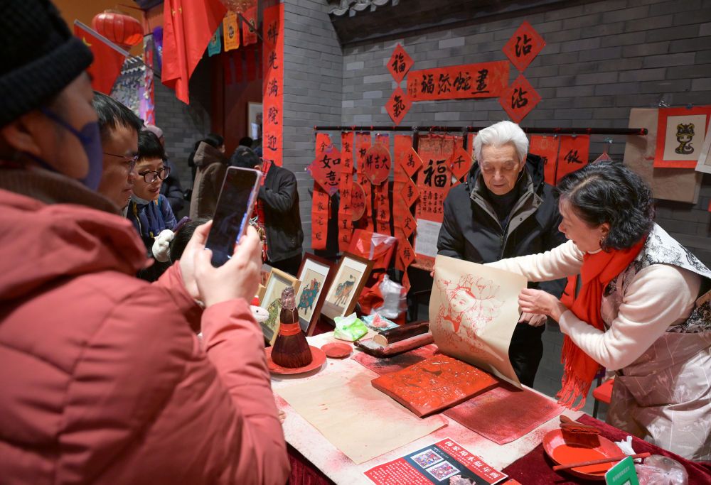 孔府门前,“送万福拍万照惠万家”活动吸引了大量游客和市民参与,大家跟着写福字,体验中华优秀传统文化的魅力。