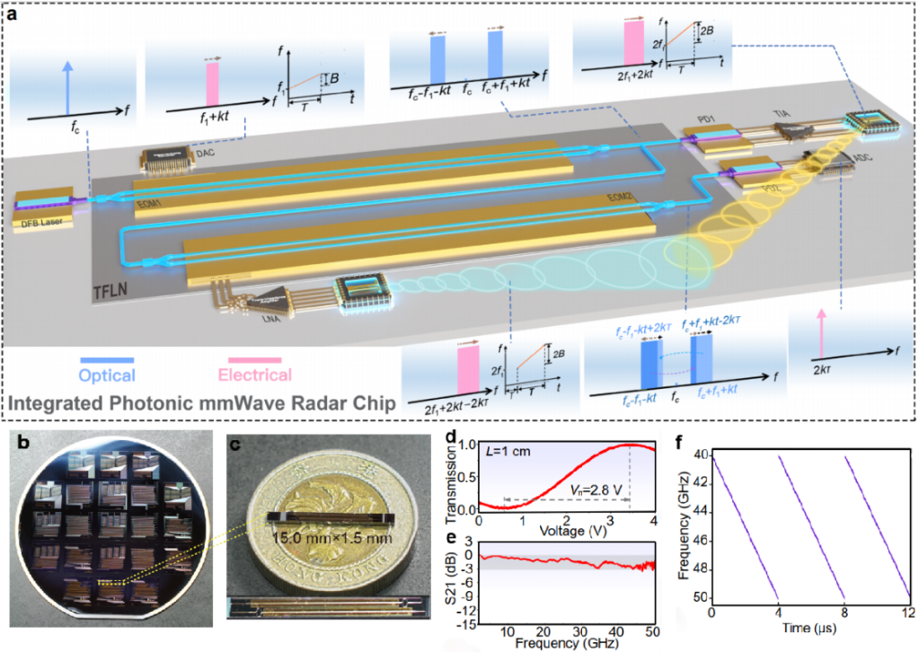 记者日前从南开大学获悉,南开大学携手香港城市大学,成功研制出薄膜铌酸锂光子毫米波雷达芯片,在毫米波雷达领域取得重大突破。这一创新成果,为未来6G通信、智能驾驶、精准感知等前沿领域的应用奠定了坚实基础。