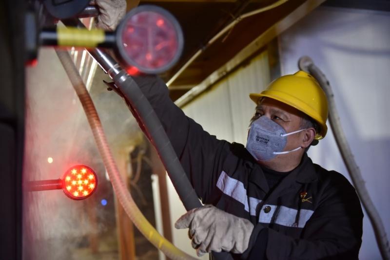 武昌南机务段配属机车实行长交路跨局轮乘,运行牵引区段辐射鄂豫湘赣等九省二市,途经山区、丘陵区段,运行距离达到1500多公里。春运期间天气寒冷钢轨易结霜,机车交路频繁,客流量大,机车回库后,8个砂箱的砂都基本见底。相比于其他作业,上砂这个“冷门”工种一直是外界眼中的体力活。