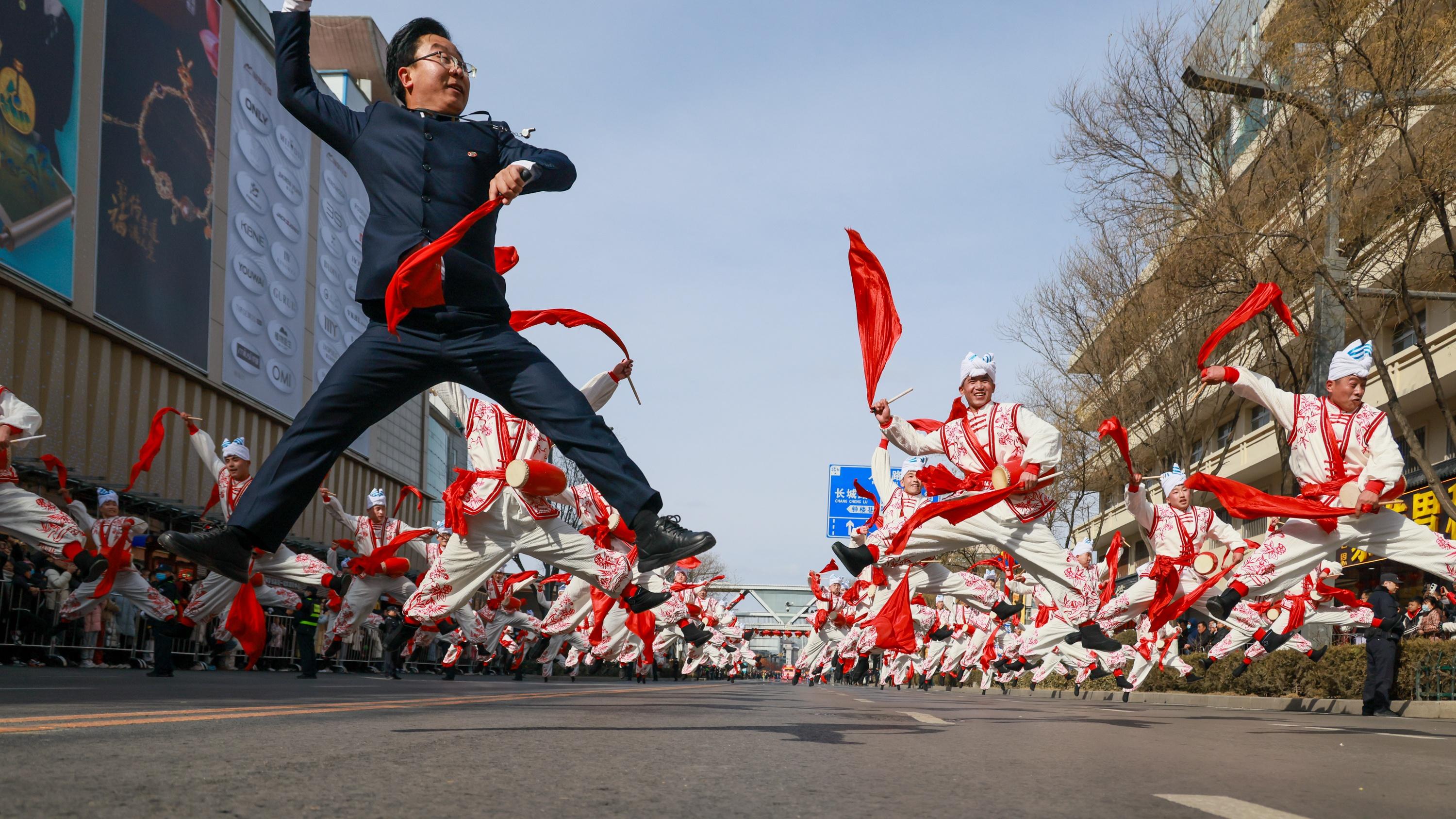 2月1日,榆林城区彩绸飞舞,锣鼓喧天。率先登场的是来自榆林本地的多支精英队伍,国家能源集团神东煤炭集团秧歌队活力满满,矿工们扭起秧歌来别有一番精气神;榆林高新区青少年腰鼓队的孩子们打起腰鼓朝气蓬勃,尽显青春活力与传承力量;榆林市榆阳区代表队、佳县代表队、吴堡县代表队,也都带着浓郁的地方特色,将本土秧歌风情展现得淋漓尽致。