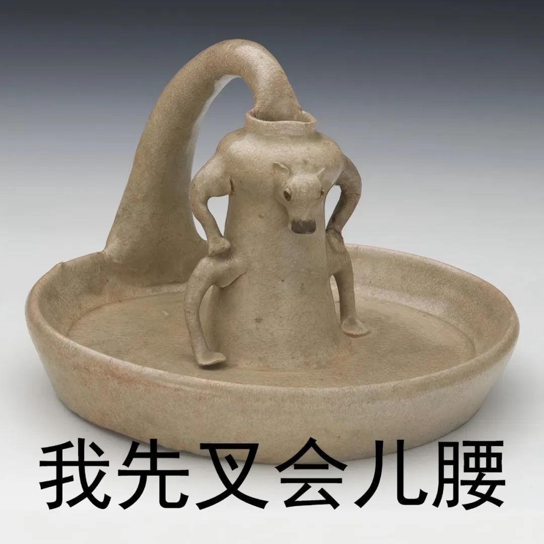 从外形上看,牛形灯前腿叉着腰、后腿扎马步,作出拟人直立姿态,气场十足,又萌趣可爱。这种反差使它与其他自带高冷气场的文物截然不同,甚至做成表情包也毫不违和。