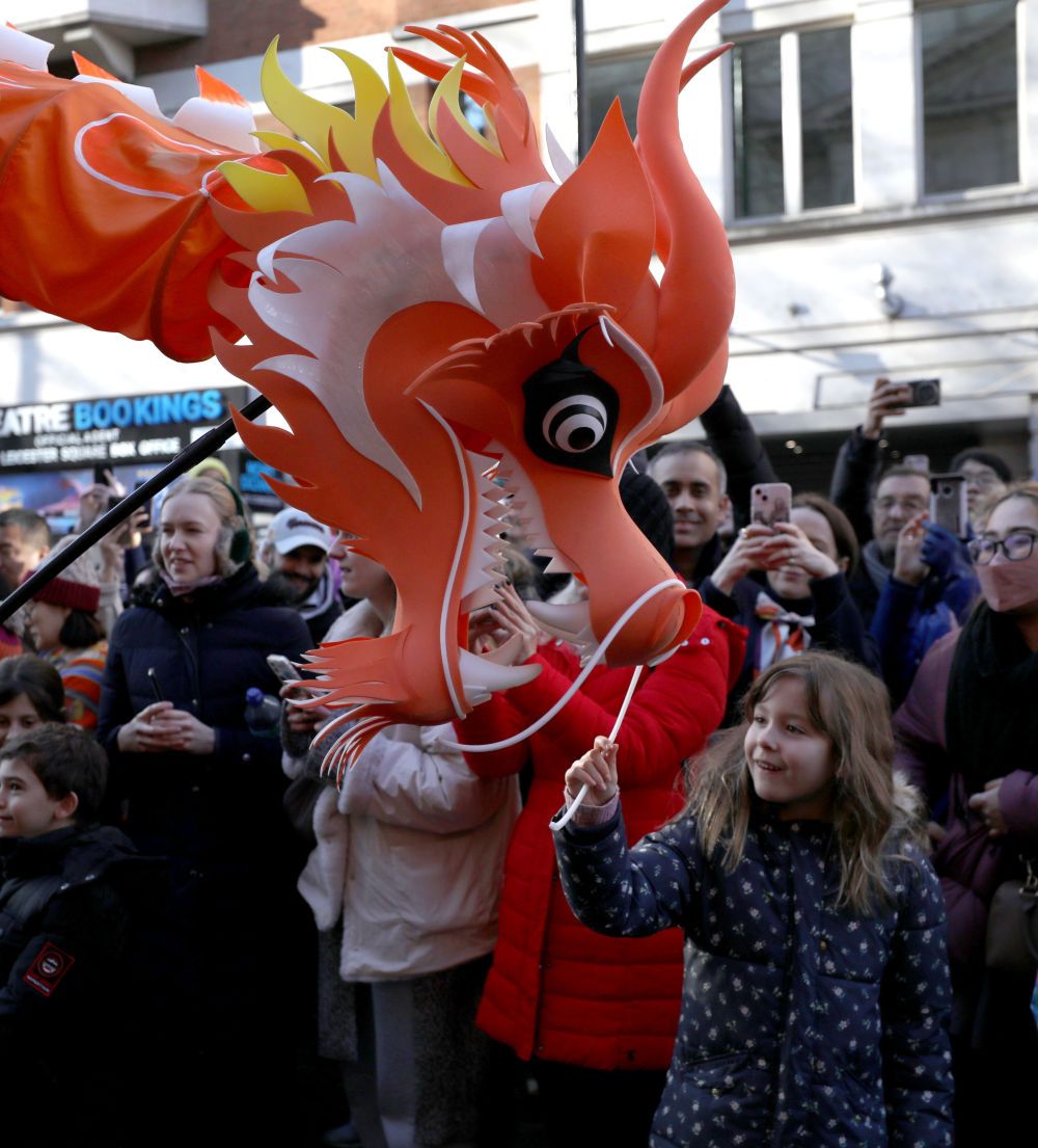 俄罗斯圣彼得堡冬宫桥、美国纽约帝国大厦等多国地标性建筑纷纷亮起“中国红”;在阿根廷布宜诺斯艾利斯,金色舞龙翻腾跃动,民众挤满街道,争相触碰“龙尾”;联合国邮政管理局发行蛇年生肖个性化邮票版张……四海同春,五洲同乐,各国人民共享中国年味。