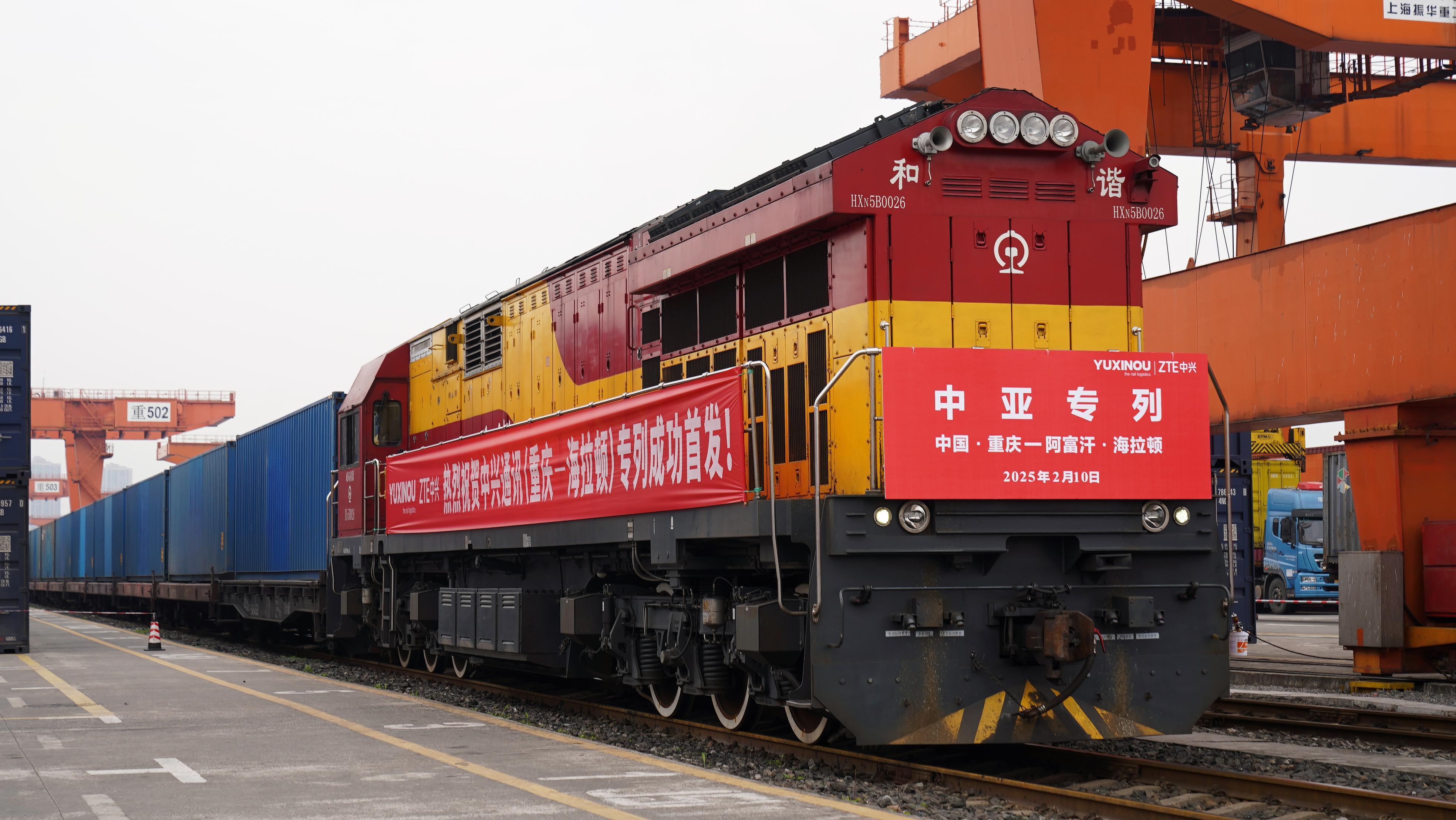 2月10日10时10分,一列满载中兴通讯生产的通信设备等产品的重庆中亚班列,从重庆团结村车站缓缓驶出。此趟班列将经由霍尔果斯口岸出境,途经哈萨克斯坦、乌兹别克斯坦,最终抵达阿富汗海拉顿。这是重庆首次开行直达阿富汗的铁铁联运货运班列,也成功实现了中兴通讯阿富汗专列的全球首发,标志着重庆中亚班列线路得到进一步拓展,也为中国与阿富汗之间的经贸合作开辟了新的陆路通道。