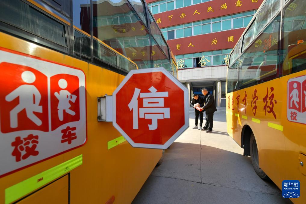 2月10日,河南省商丘市夏邑县育才学校校车安全员和驾驶员检查车辆状况。