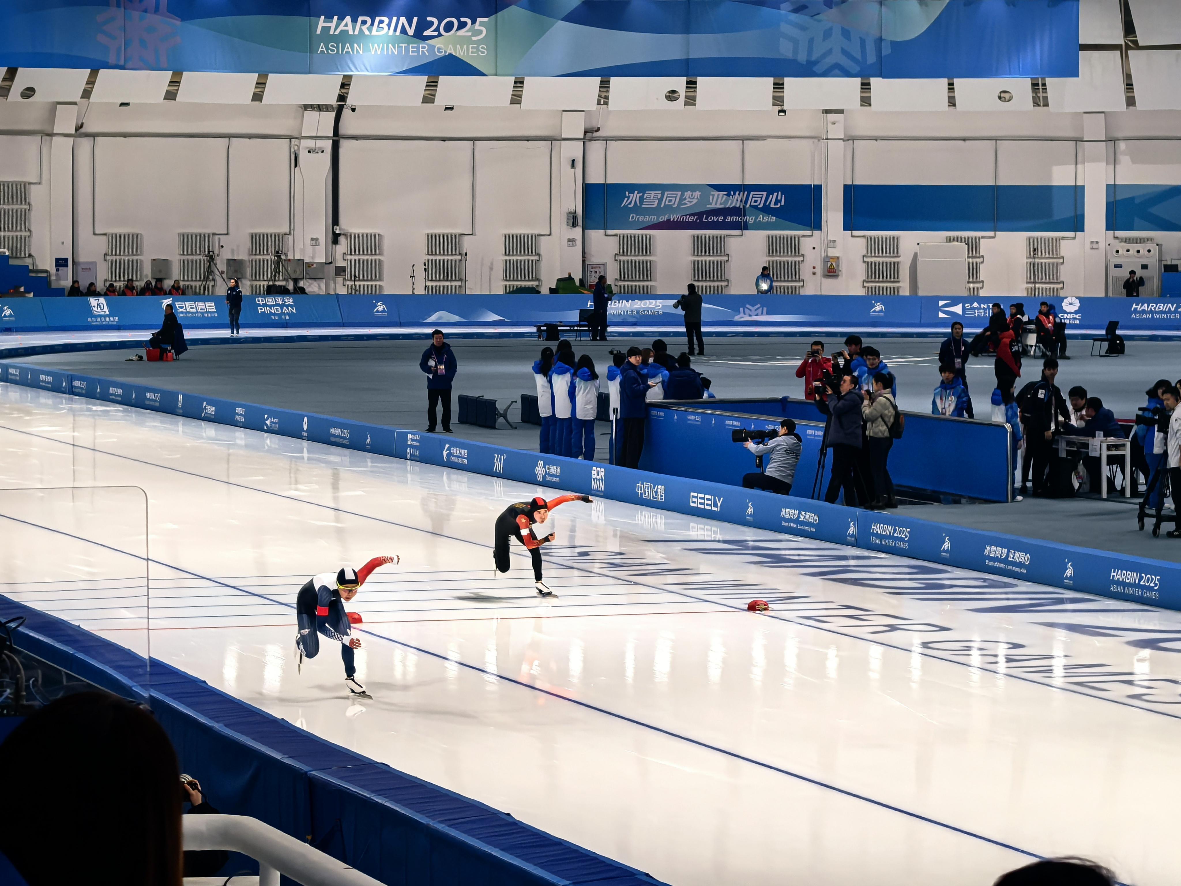 2月11日,哈尔滨2025年第九届亚洲冬季运动会速度滑冰女子1000米决赛举行,中国选手韩梅夺得金牌,殷琦获得银牌。
