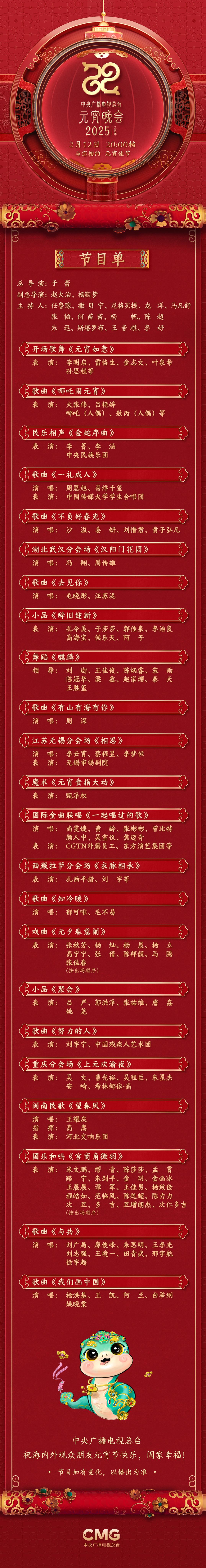 花灯映月圆,万家共此时!中央广播电视总台《2025年元宵晚会》将于2月12日晚8点档与海内外观众见面。晚会在“欢乐吉祥、喜气洋洋”的总基调中,通过歌曲、舞蹈、相声、小品、戏曲、魔术等各类型的节目,呈上一席兼具传统意蕴与现代活力的团圆家宴,与全球观众共度上元之夜。