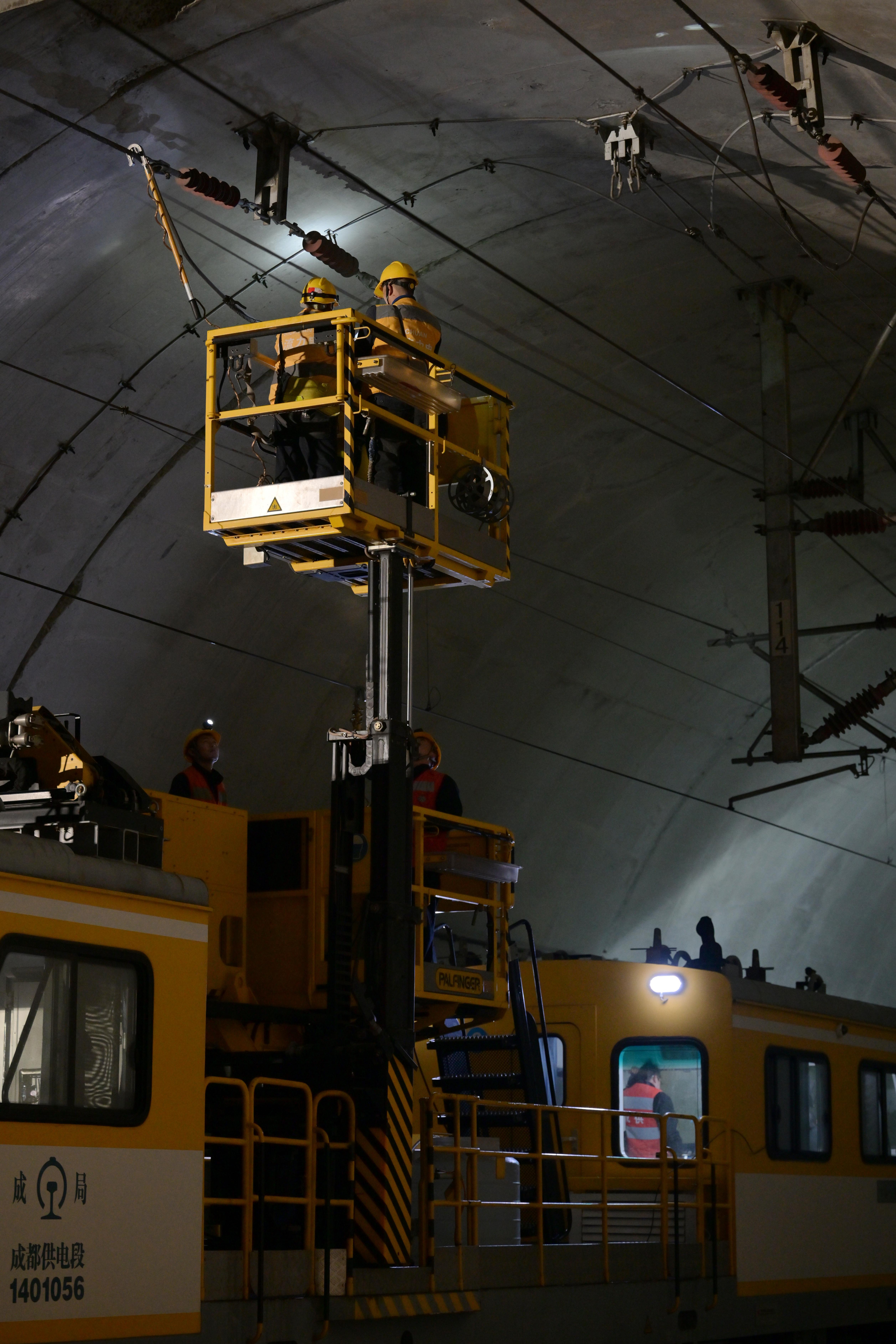 12日,春节假期结束,四川多地迎来外出务工人员返岗高峰,铁路运输进入大运量状态。为确保铁路供电设备运行安全稳定,中国铁路成都局集团有限公司成都供电段在西成高铁、成自宜高铁、成灌铁路等多条线路上,运用多平台自轮运转特种设备,开展供电接触网状态检测与维护工作。
