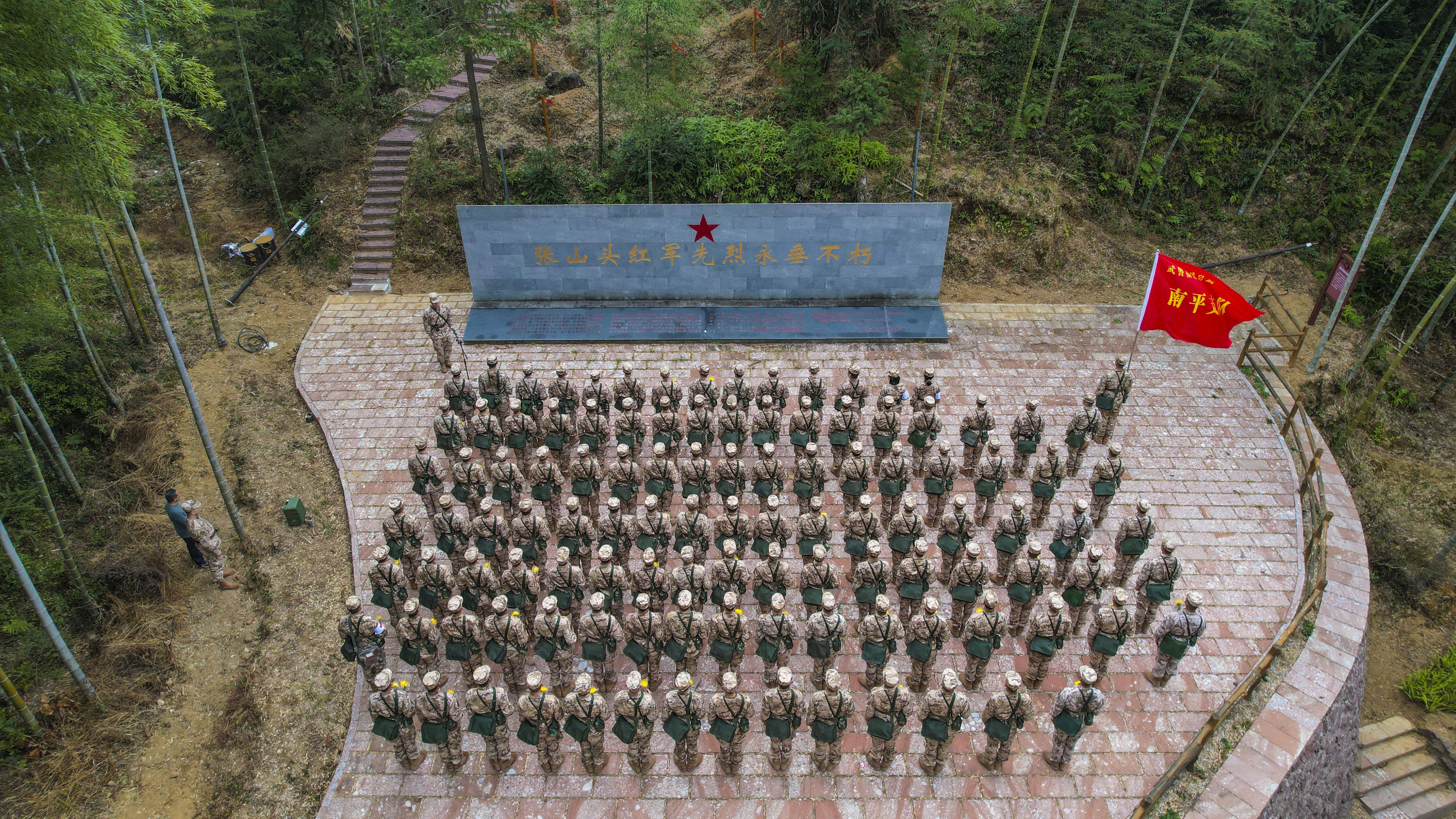 在“张山头红军先烈永垂不朽”纪念碑前,新兵们整齐列队,高举右手,庄严宣誓:“我志愿加入中国共产党,拥护党的纲领,遵守党的章程……”誓言铿锵有力,久久回荡在墓群上空,激荡着他们传承先烈无畏精神、守护驻地安宁的坚定决心。