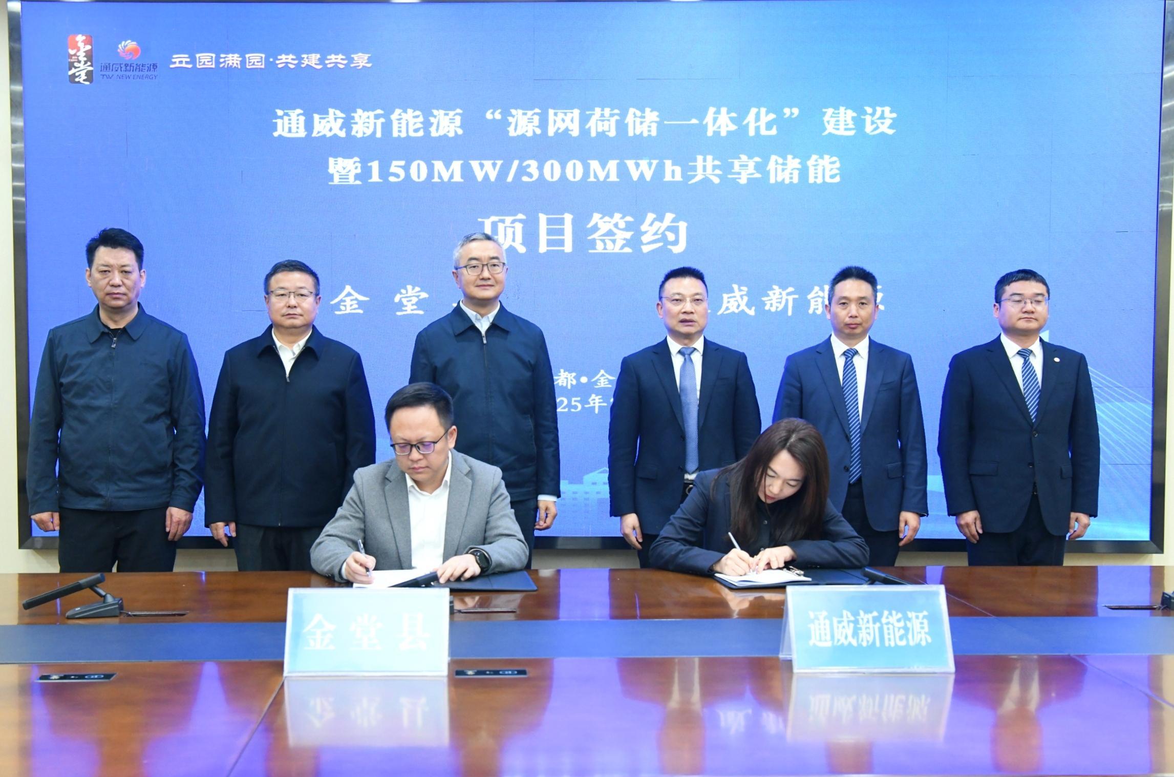 记者2月13日获悉,“立园满园·共建共享”——通威新能源有限公司(以下简称“通威新能源”)“源网荷储一体化”建设暨150兆瓦/300兆瓦时共享储能项目签约仪式,在四川省成都市金堂县举行。