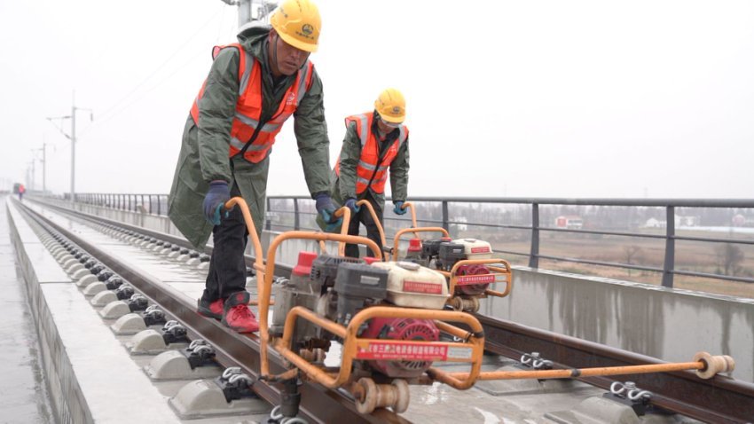据中铁一局昌九高铁站前1标铺架工区负责人刘效高介绍,在昌九高铁先开段铺轨施工中,他们投入新型多功能长轨牵引车、中频数控电正火机、焊头数控精磨机等自动化设备,实现铺轨施工组织和项目管控智能化、信息化,显著提升了轨道铺设质量。